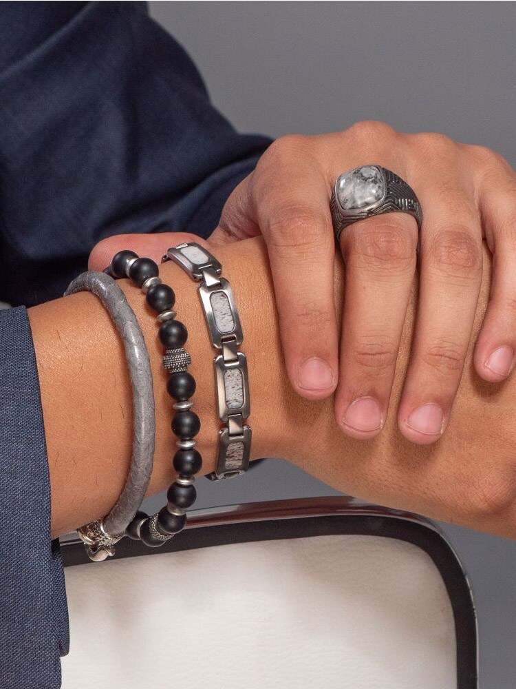 Black Agate: A protective and grounding stone with white, gray, or brown banding, found in India, Brazil, and Mexico. It enhances inner strength and promotes emotional balance and confidence.