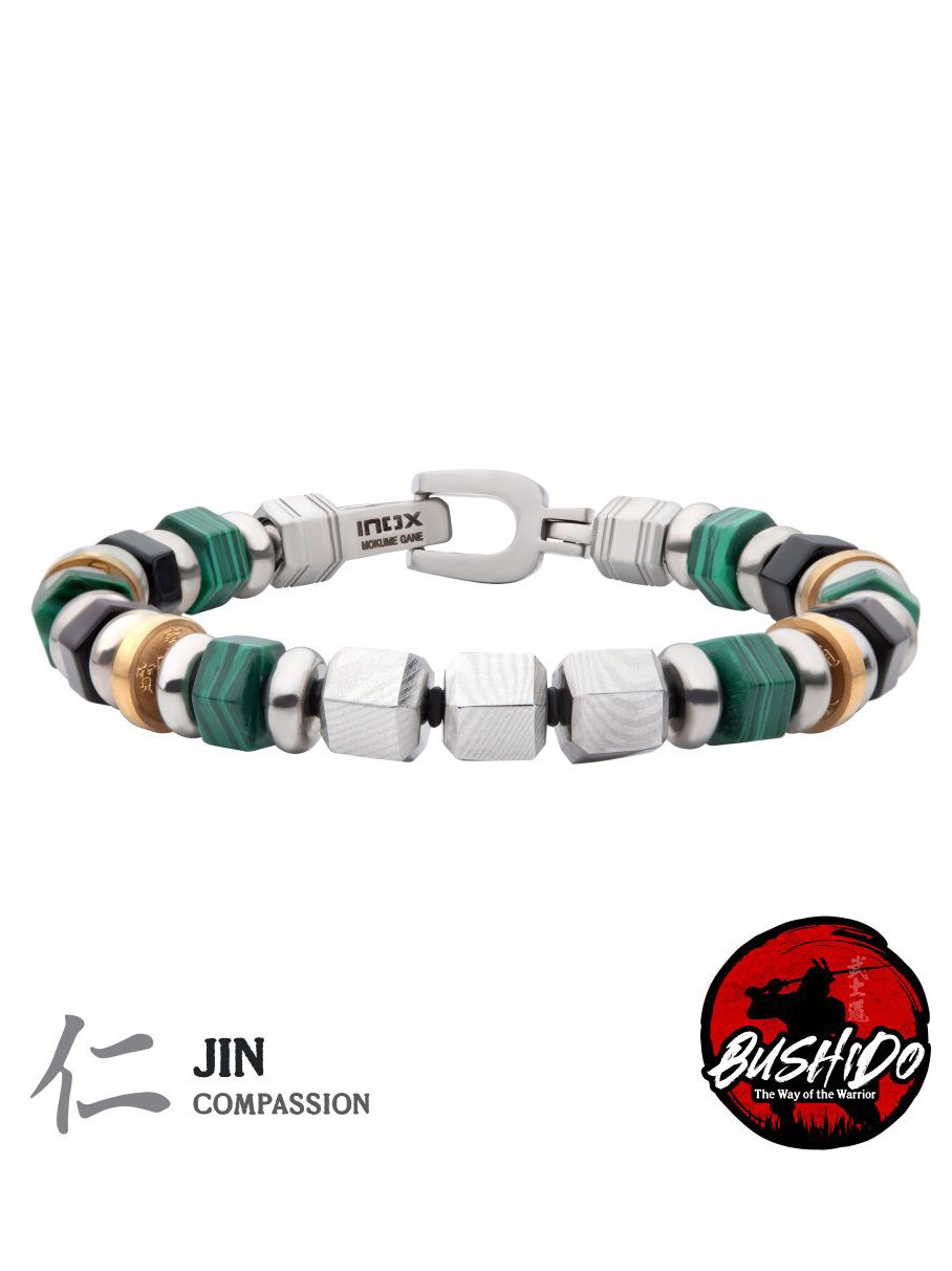 Ett exklusivt armband inspirerat av den japanska Bushido-traditionen. Armbandet kombinerar den traditionella tekniken Mokume Gane – en unik metallkonst som skapar mönster som påminner om träådring – med fina ädelstenar.