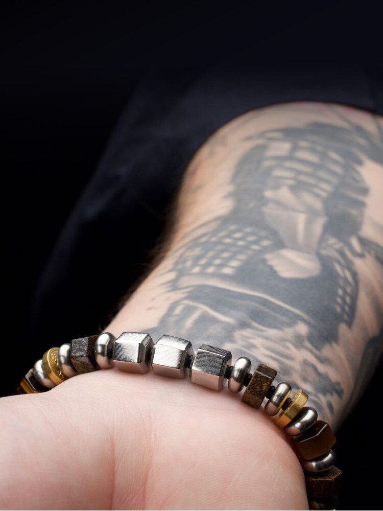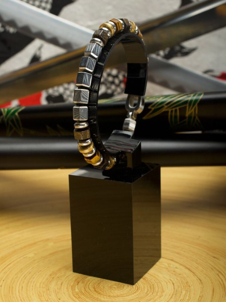 Ett exklusivt armband inspirerat av den japanska Bushido-traditionen. Armbandet kombinerar den traditionella tekniken Mokume Gane – en unik metallkonst som skapar mönster som påminner om träådring – med fina ädelstenar.