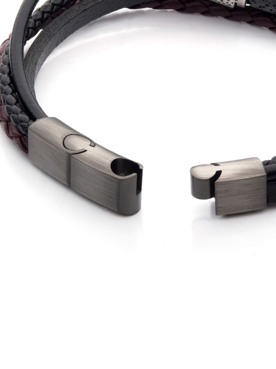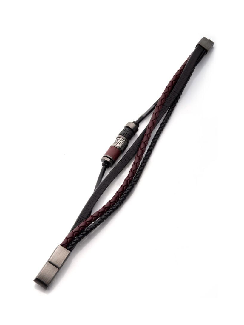 Flertrådat armband i läder med lavasten och detaljer i rostfritt stål. Justerbart magnetlås.