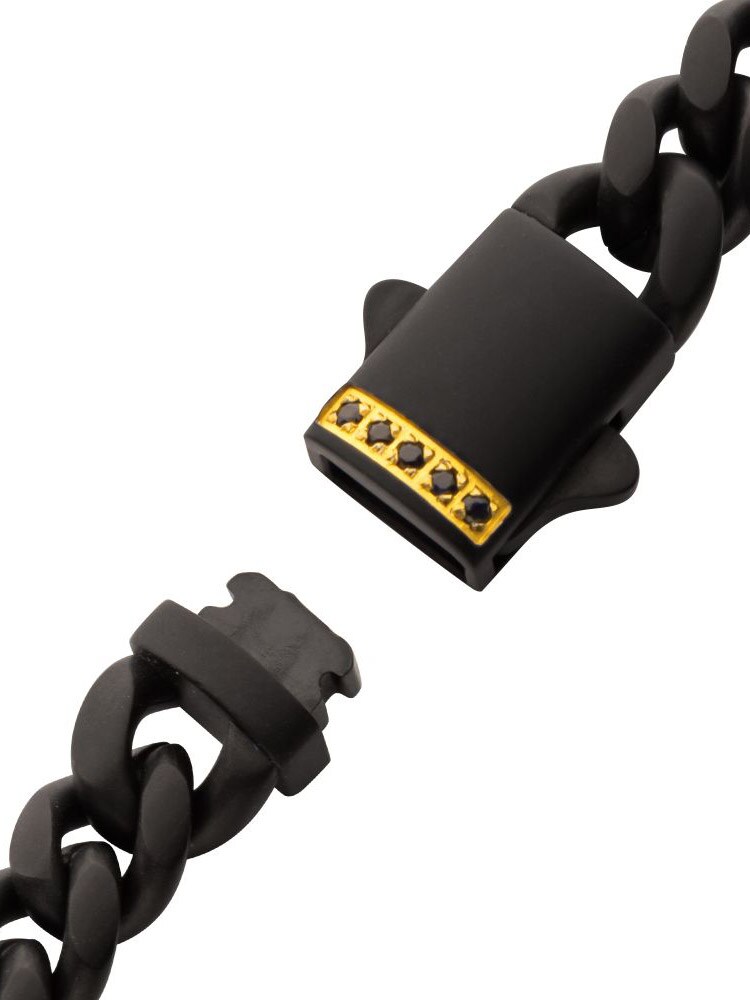 Kedjearmband i rostfritt stål med svart IP-plättering.Designad med Safirsten vid låset och har en matt finnish.