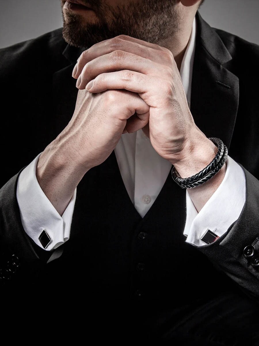 Ett elegant och mångsidigt armband i flätad läder med ett polerat magnetlås i rostfritt stål. Låset är lätt att hantera med en hand och levereras med en extra förlängningslänk, så du enkelt kan justera längden efter önskad passform. Perfekt för dig som vill ha en diskret men karaktärsfull accessoar som lyfter hela looken!