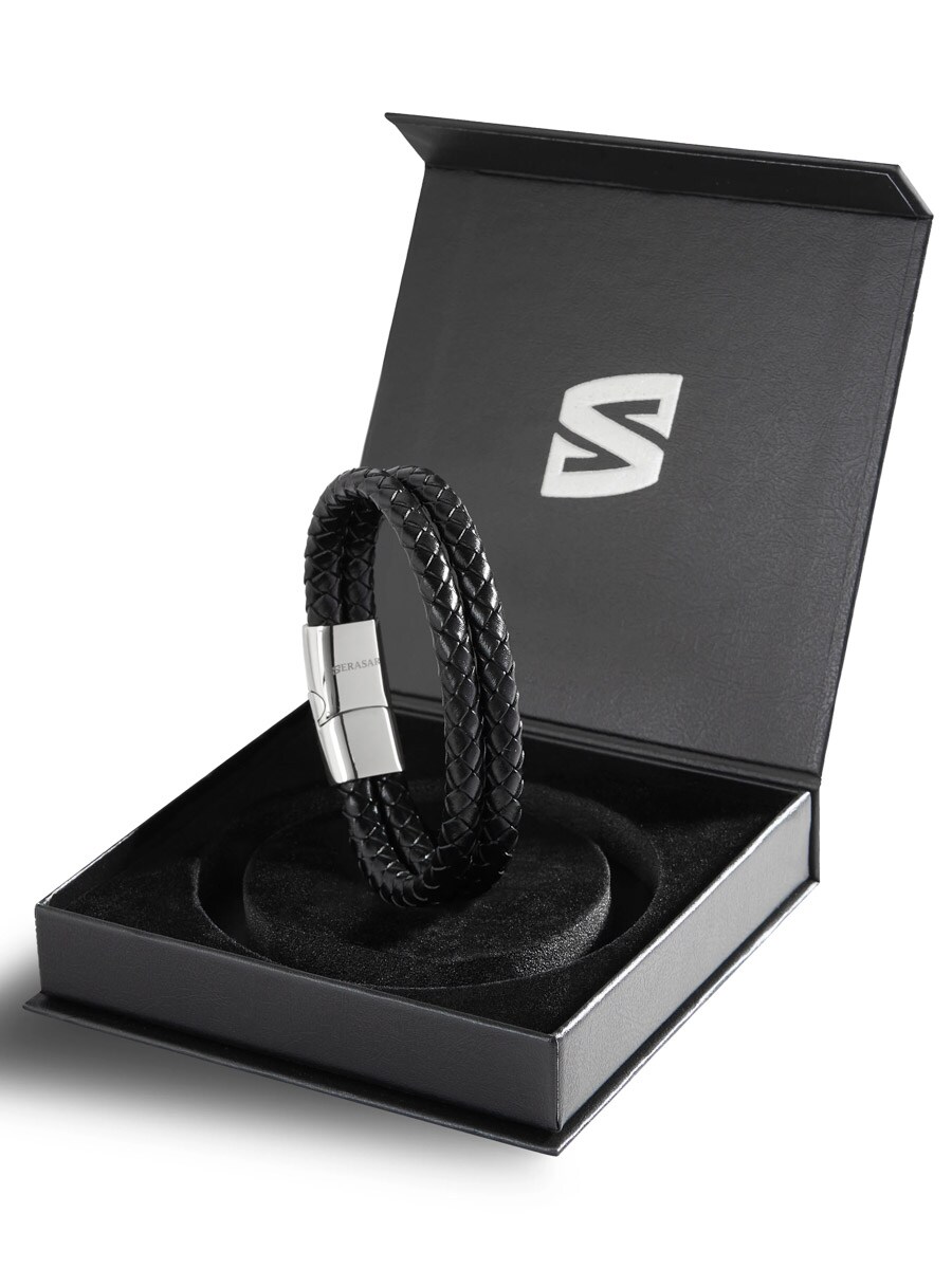 Ett elegant och mångsidigt armband i flätad läder med ett polerat magnetlås i rostfritt stål. Låset är lätt att hantera med en hand och levereras med en extra förlängningslänk, så du enkelt kan justera längden efter önskad passform. Perfekt för dig som vill ha en diskret men karaktärsfull accessoar som lyfter hela looken!