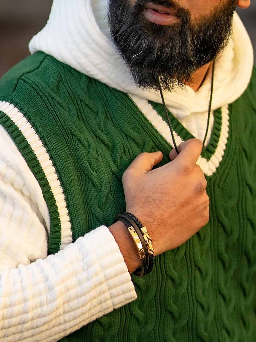 Ett elegant armband som kombinerar svart äkta läder med polerade element i rostfritt stål. Det säkra magnetlåset gör armbandet enkelt att ta på och av, och den medföljande förlängningslänken låter dig justera längden för optimal passform. Designen balanserar klassisk stil med modern attityd - perfekt både till vardag och fest!