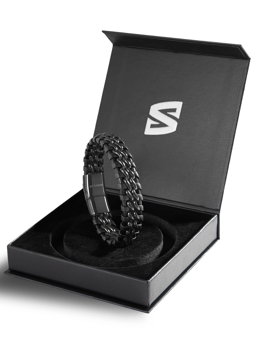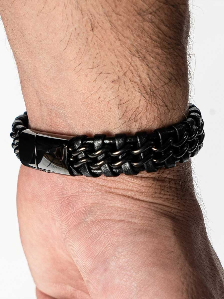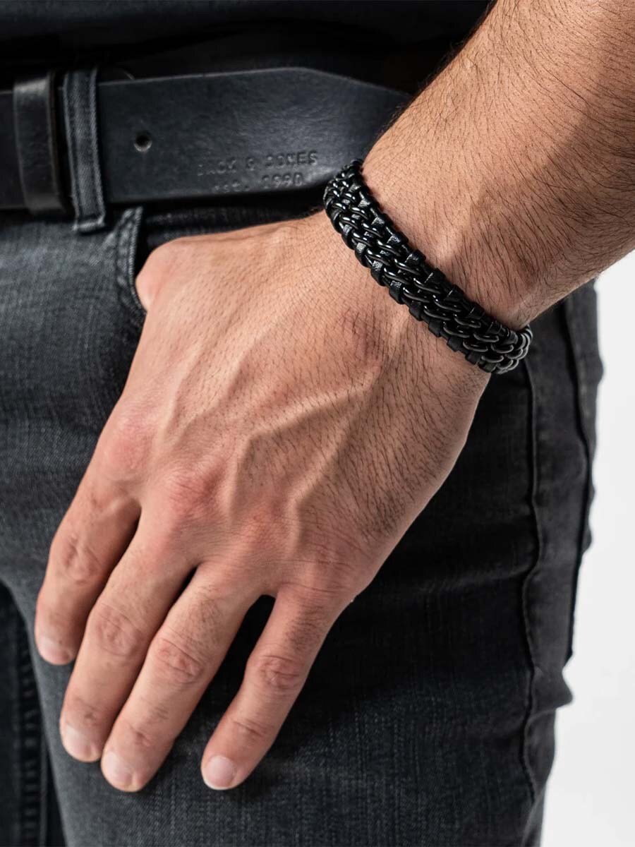 Snyggt armband i en flätad mix av äkta läder och rostfritt stål. Det polerade magnetlåset gör det enkelt att ta på och av, samtidigt som det sitter säkert hela dagen. Armbandet levereras med en extra länk för justerbar längd - perfekt om du vill ha lite mer rymd eller är osäker på storleken. En tidlös accessoar som passar alla outfits.