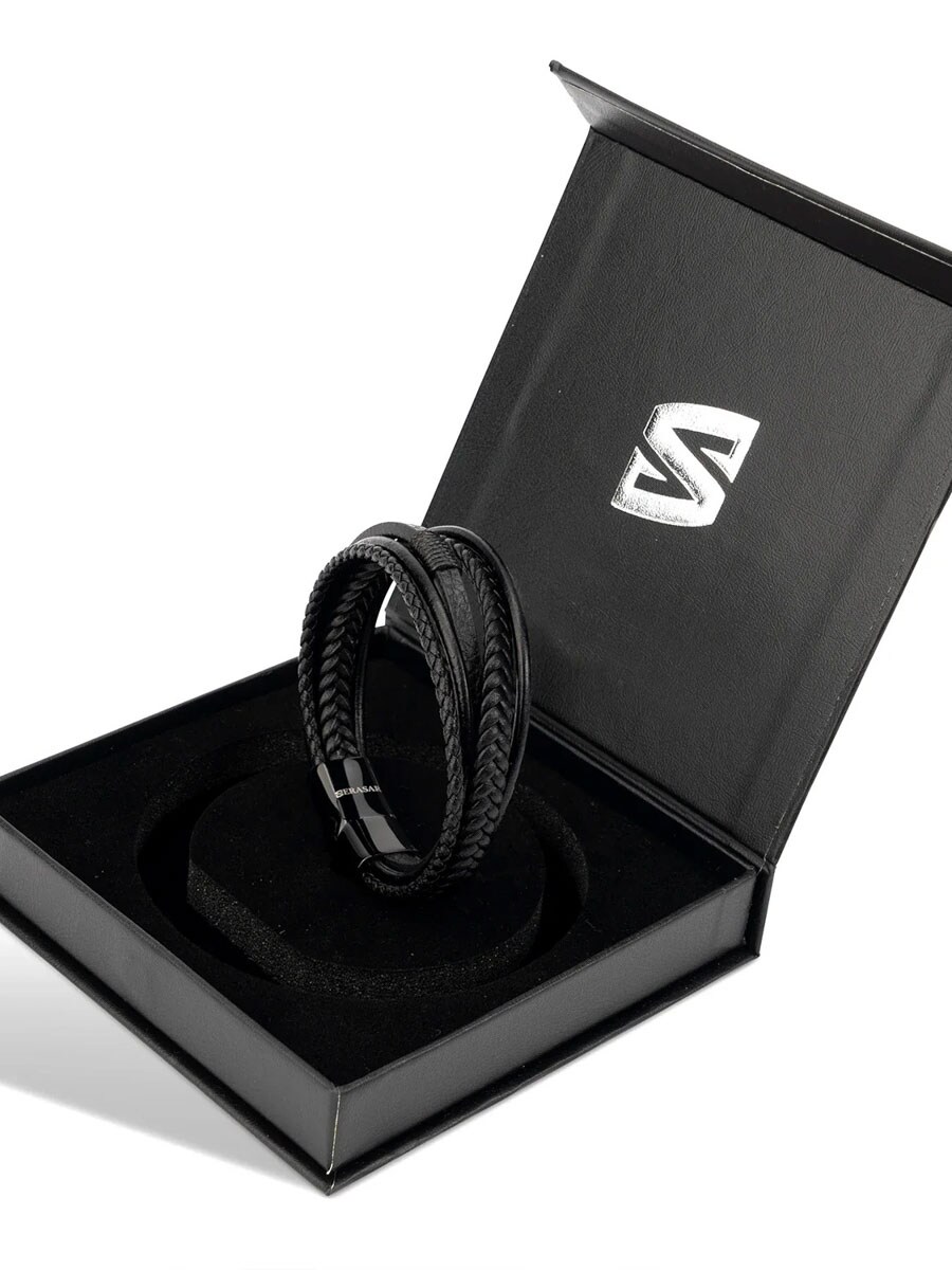 Ett stilrent armband i äkta, flätat läder som ger en modern look. Det polerade magnetlåset i rostfritt stål gör det enkelt att ta på och av, samtidigt som det sitter säkert hela dagen. Armbandet levereras med en extra länk för justerbar längd - perfekt om du vill ha lite mer rymd eller är osäker på storleken. En tidlös accessoar som passar alla outfits.