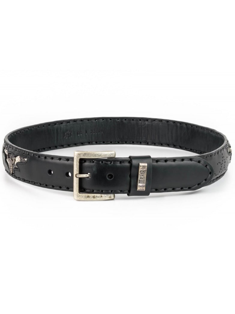 Ett karaktärsstarkt bälte för dig som söker något utöver det vanliga. Tillverkat i en kombination av robust svart Vacuno-läder och äkta naturligt pytonläder som skapar en exklusiv finish och unik textur. Det präglade mönstret och de dekorativa metalldetaljerna ger bältet en distinkt western-inspirerad look. Ett perfekt statementaccessoar som lyfter både jeans och chinos!