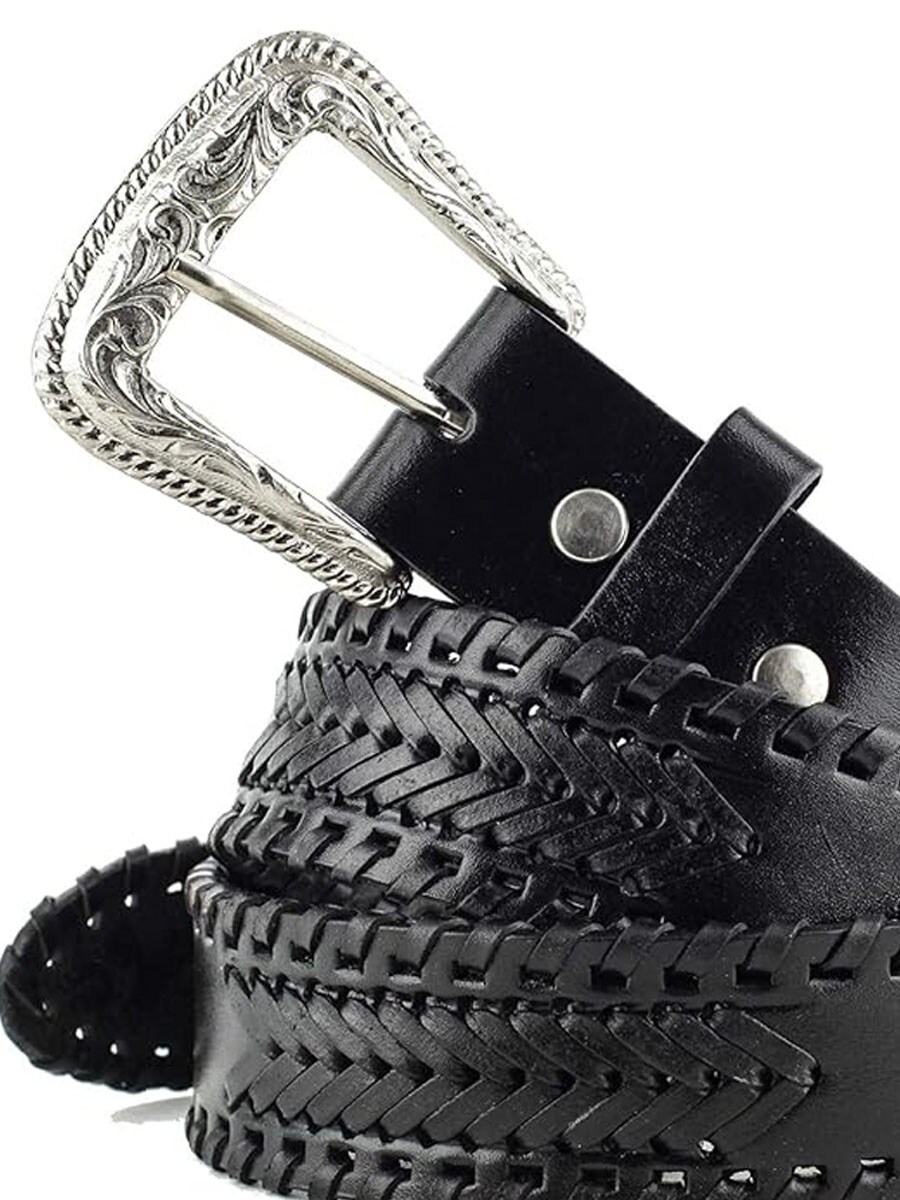Ett högkvalitativt westernbälte i kraftigt läder med flätade detaljer och dekorativa inslag som ger ett klassiskt cowboyuttryck. Det stilfulla spännet är utbytbart, vilket gör bältet enkelt att kombinera med nästan vilket bältesspänne som helst.