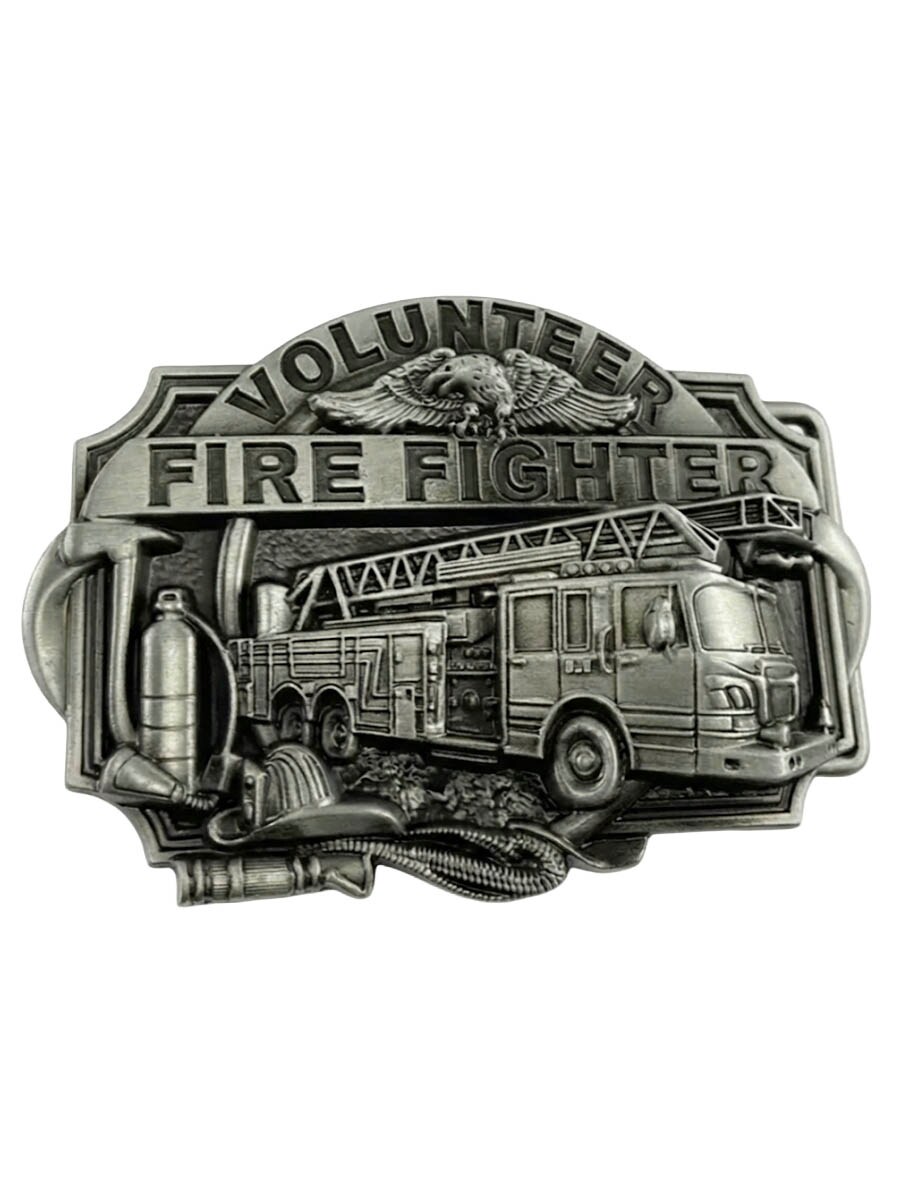 Ett kraftfullt spänne med brandbil och texten "Volunteer Fire Fighter". Motivet ger spännet en stolt, heroisk känsla - perfekt för både samlare och brandkårs-entusiaster. Spännet passar bälten som är upp till 4 cm breda, vilket gör det enkelt att kombinera med de flesta standardbälten med utbytbara spännen.