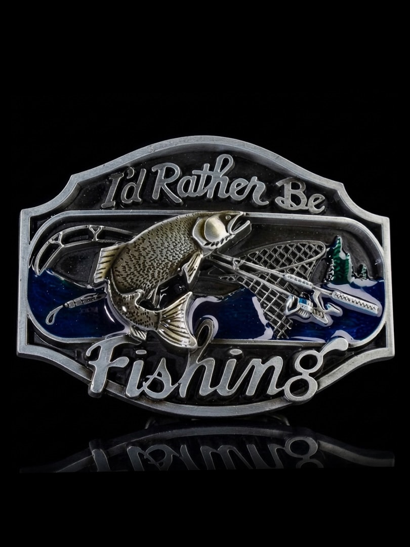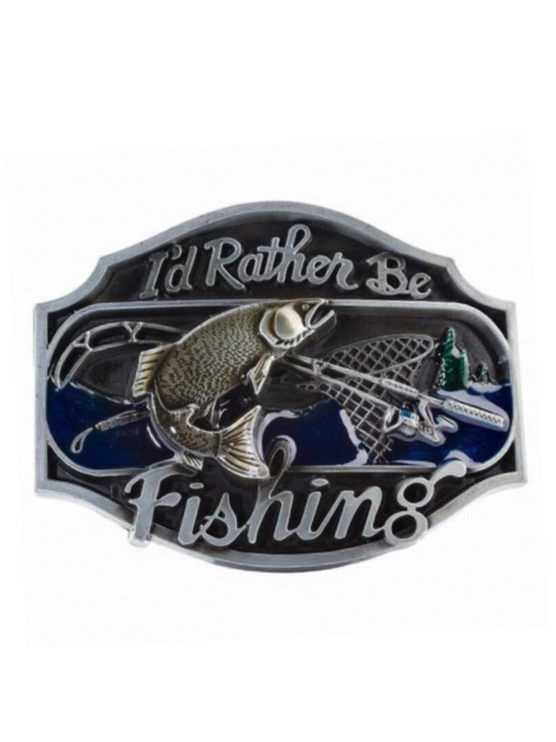 Ge din stil en personlig touch med detta bältestänne i antik vintagefinish. Den detaljerade designen visar en fisk tillsammans med texten “I’d rather go fishing”, vilket skapar ett humoristiskt och tydligt uttryck för alla som älskar fisket. Spännet passar bälten som är upp till 4 cm breda, vilket gör det enkelt att kombinera med de flesta standardbälten med utbytbara spännen.