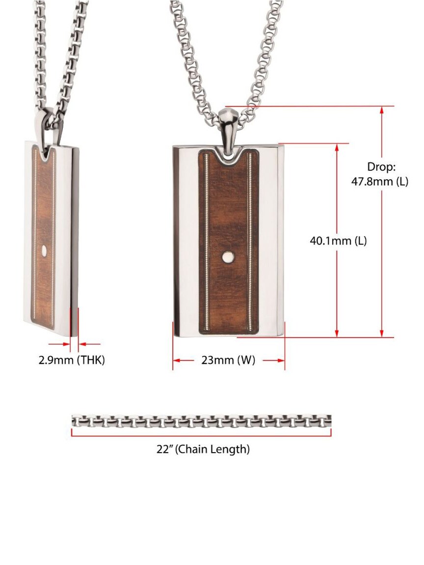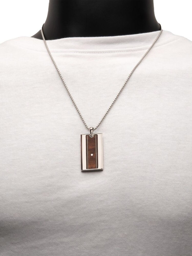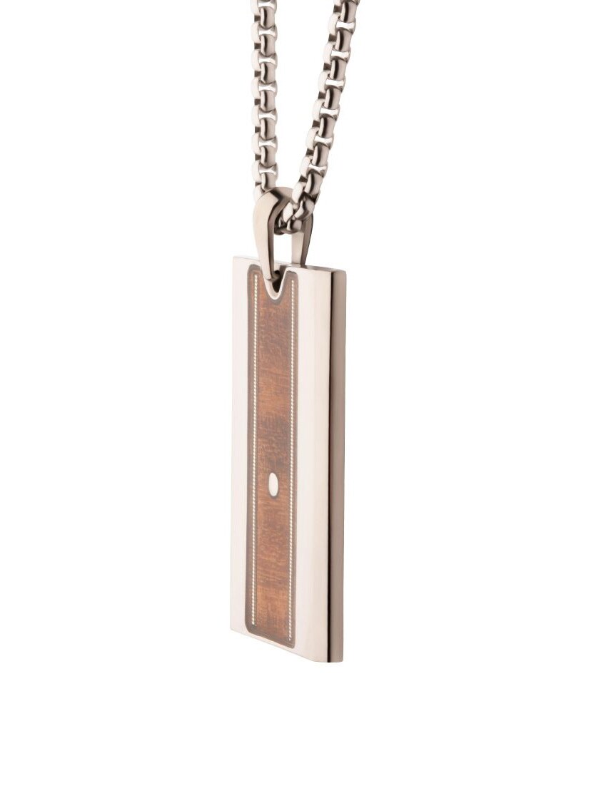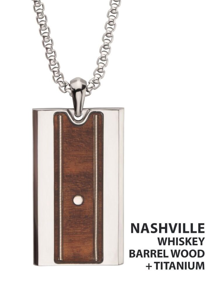 Halsband i rostfritt stål med ett slitstarkt titanhänge. Hänget pryds av äkta trä från whiskeyfat och gitarrsträngar som förstärker den karakteristiska Nashville-känslan.