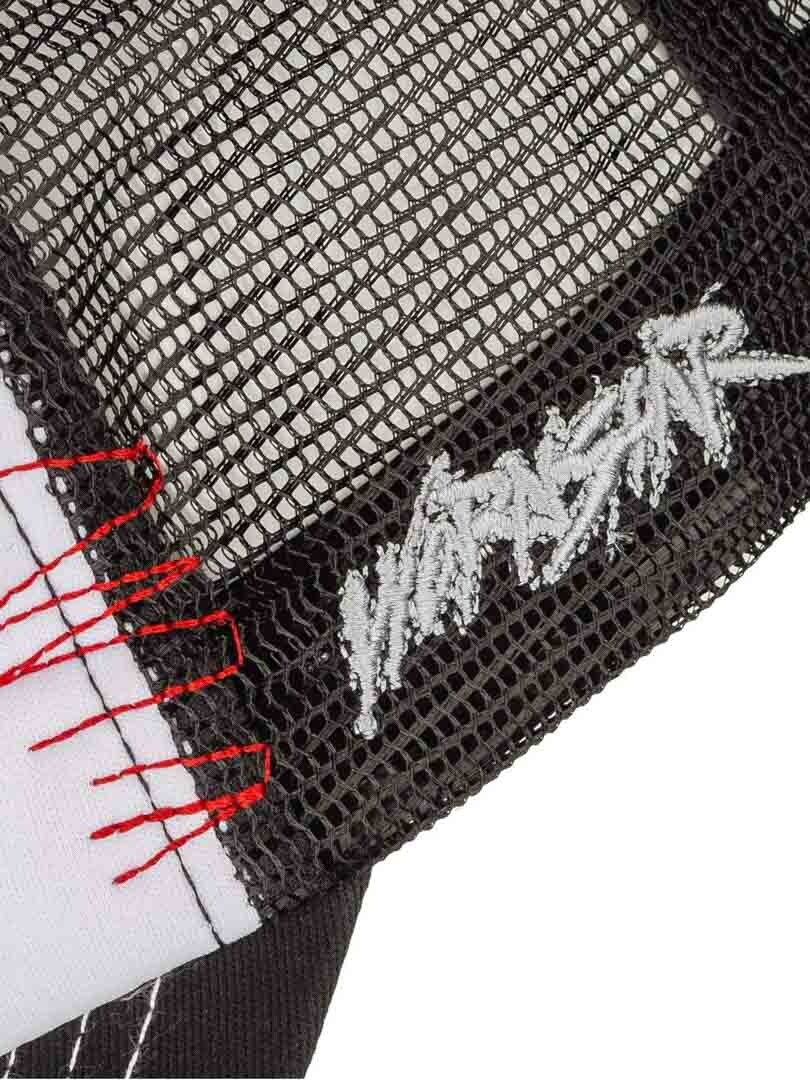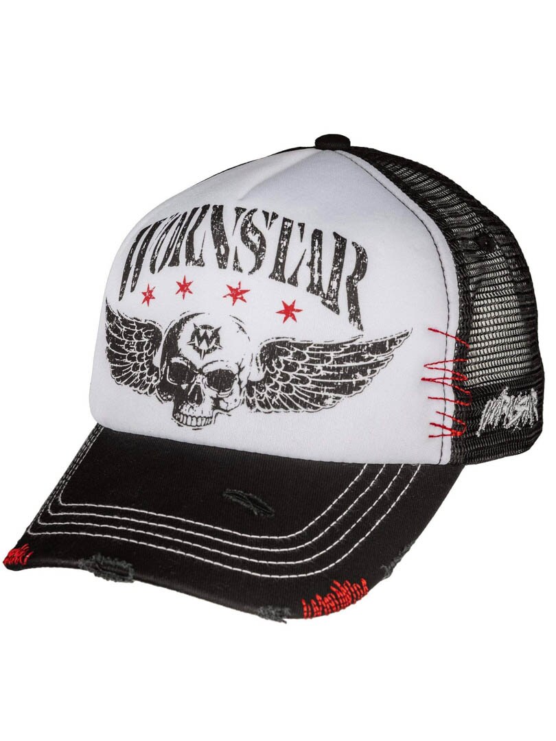 Wornstar Ascension Trucker Keps i svart och vitt med dödskallemotiv och slitna detaljer är ett måste för rockentusiasten.