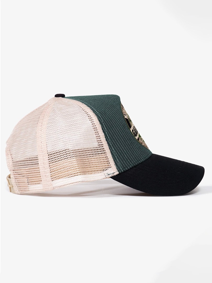 En truckerkeps med exklusiv frontbrodyr i trendig vintage-stil. Meshpartiet baktill garanterar god ventilation och ger därmed optimal bärkomfort. Den har böjd skärm och snapback.