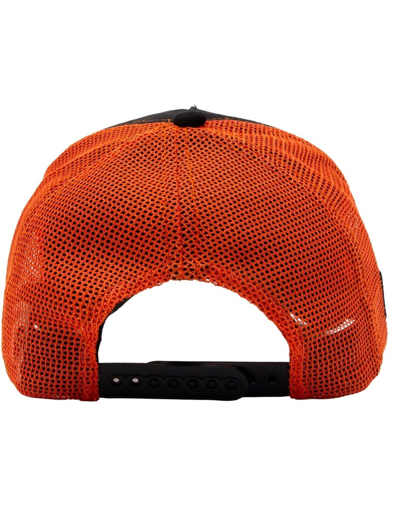 Kaxig keps i svart och orange med en kraftfull kontrast som drar blickarna till sig och en uttrycksfull design som sätter tonen direkt. Kepsen har meshpanel baktill för skön ventilation, markerade kontrastsömmar och en justerbar snapback som ger en bekväm passform hela dagen.