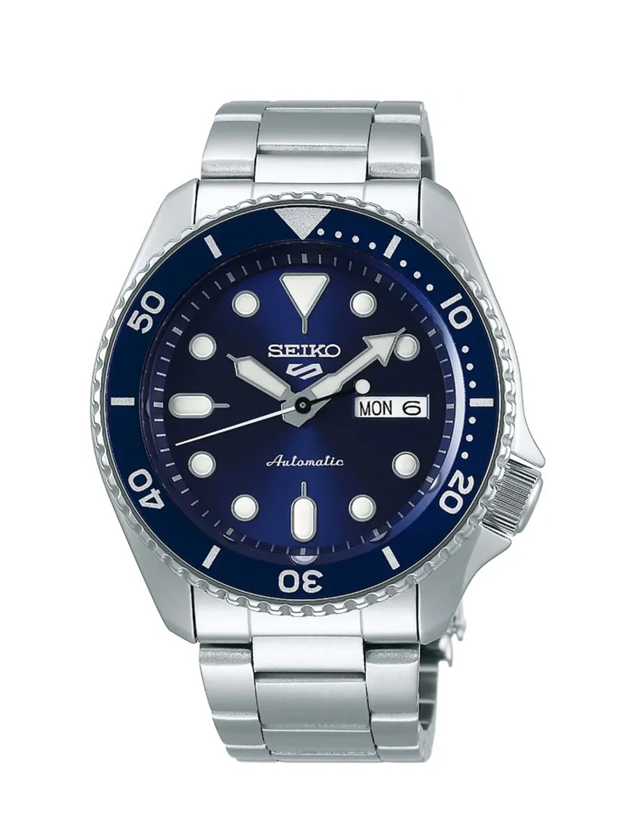 Seiko 5 Sports SRPD51K1 är en sportig automatisk herrklocka som kombinerar tidlös design med modern funktionalitet. Den djupblå urtavlan med sunburst-effekt och matchande vridring ger en elegant kontrast mot boetten och länken i rostfritt stål. Klockan har tydlig dag- och datumvisning vid klockan tre samt LumiBrite-visare för optimal läsbarhet i mörker. Med ett tåligt Hardlex-glas och 100 meters vattentäthet är den byggd för att klara både vardag och aktiviteter. Det pålitliga automatiska urverket 4R36 kan beundras genom den gängade glasbaksidan.