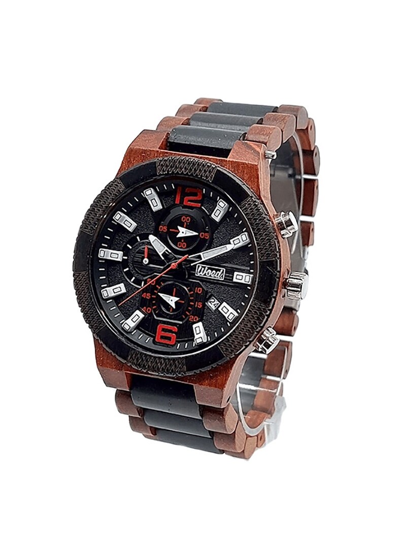 Exklusiv handgjord klocka i rött sandelträ med en lyxig och kraftfull design. Modellen ingår i Woed Premium-serie och kombinerar gediget hantverk med en modern multifunktionsurtavla. En klocka för dig som söker en unik accessoar med både karaktär och premiumkänsla.