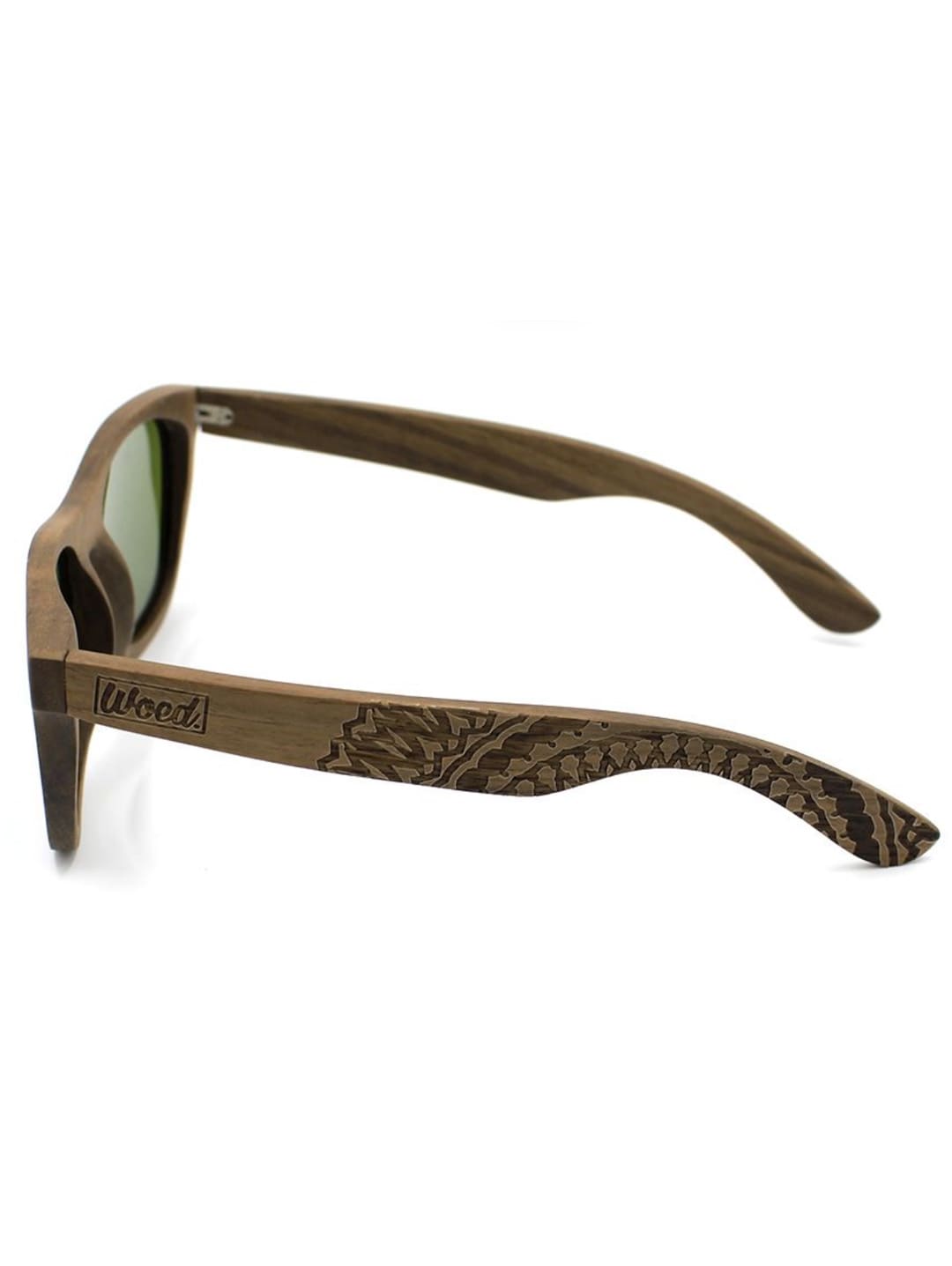 Unika solglasögon i valnötsträ med blå linser och mönstrade skalmar. Utrustade med UV400-polariserade linser som skyddar mot solen och minskar störande reflexer. Levereras med putsduk och praktisk förvaringspåse.