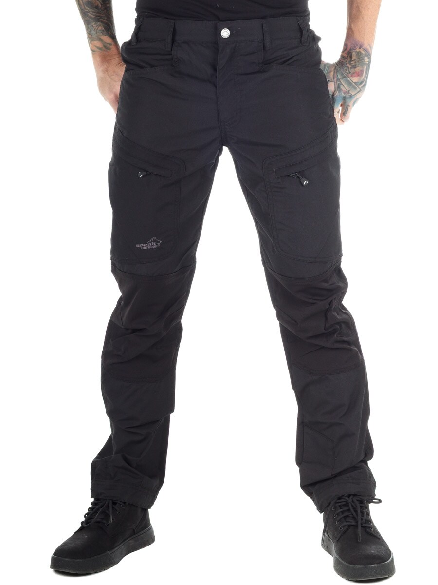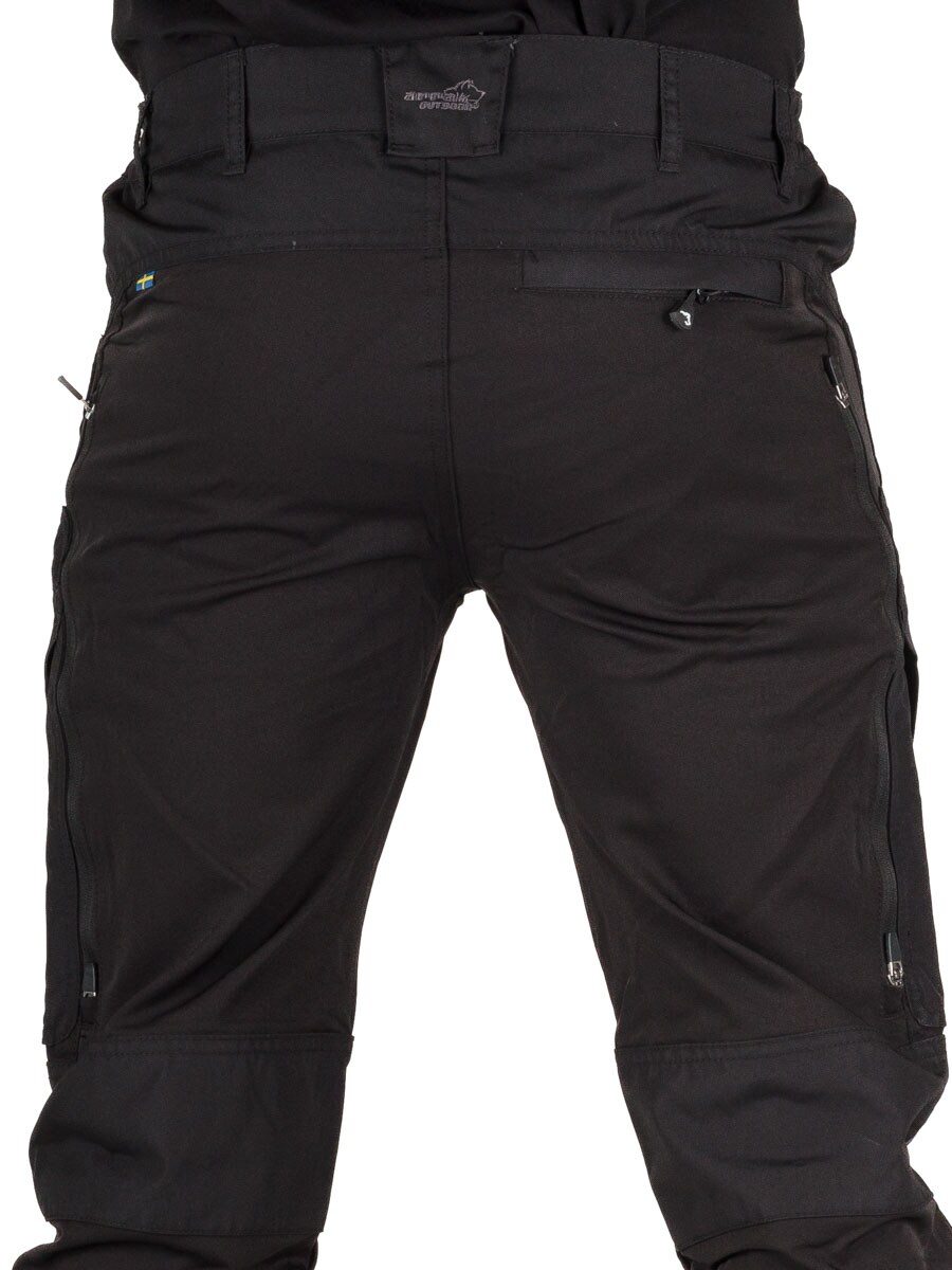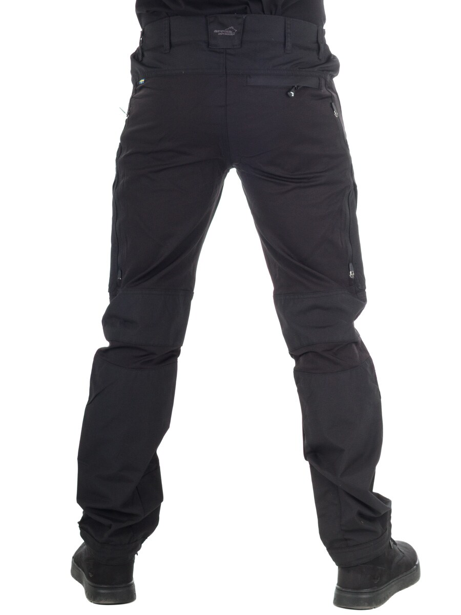 Dessa mångsidiga fritidsbyxor är designade för maximal rörlighet och komfort. Knän, knäveck och rumpa är tillverkade i DWR-behandlad 4-vägsstretch, vilket gör byxorna mycket följsamma. Nedre delen är förstärkt och har justerbara benslut samt en kängkrok för perfekt passform runt kängorna. För optimal ventilation finns öppningsbara ventilationshål med mesh på båda låren. Byxorna har totalt fem fickor, där bakfickan och lårfickorna är utrustade med dragkedja. Perfekta för alla typer av outdoor-aktiviteter!