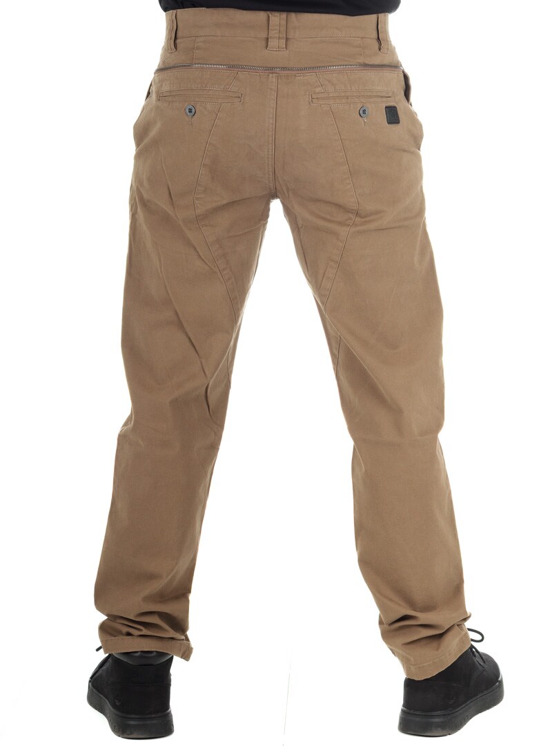 Byxor designade för dig som vill kombinera komfort, slitstyrka och rockig attityd. Byxorna har metallknappar och dragkedja, två framfickor, en liten myntficka på höger sida samt två bakfickor med knappstängning. De är detaljrika med ett skräddat tryck framtill och en svart patch med logga baktill. Bälteshällor i midjan ger extra funktionalitet och stil.