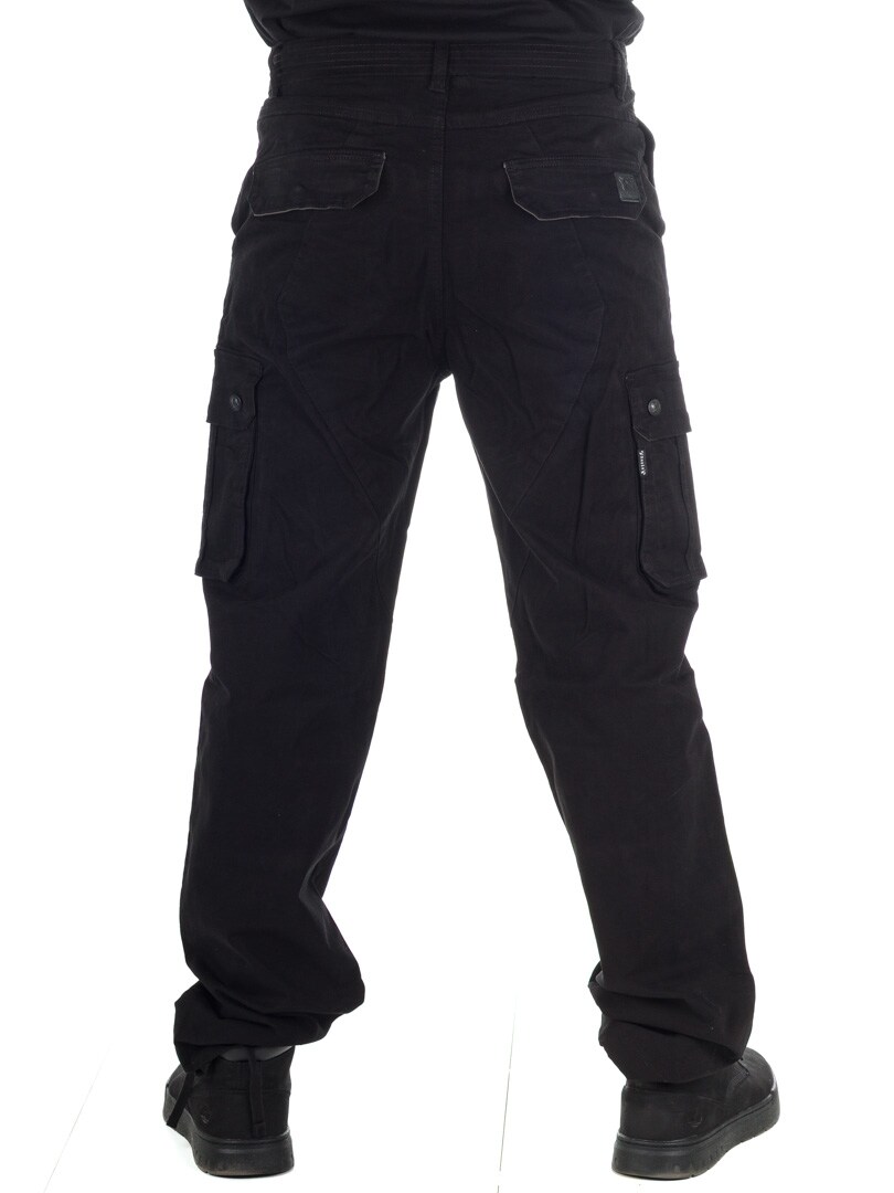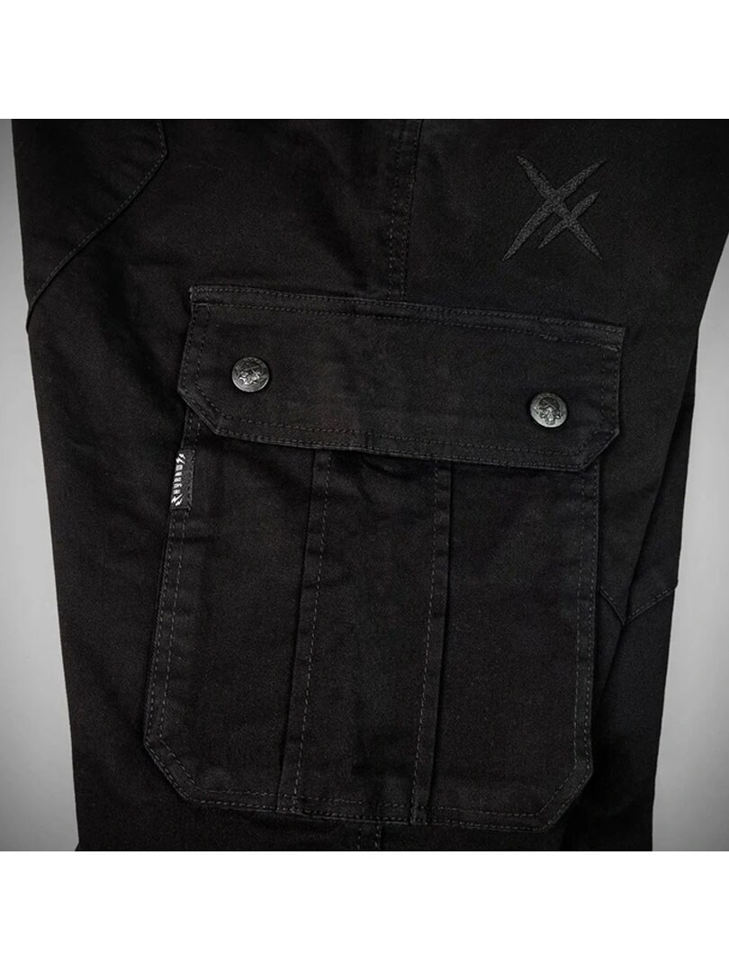 Dessa svarta cargobyxor är skapade för dig som vill kombinera komfort, slitstyrka och en rockig stil. Byxorna är designade med flera fickor, en äkta läderpatch med logga på baksidan och ett broderat motiv på framsidan. Tillverkade i ett flexibelt och hållbart canvasmaterial som erbjuder byxorna både rörelsefrihet och långvarig komfort.