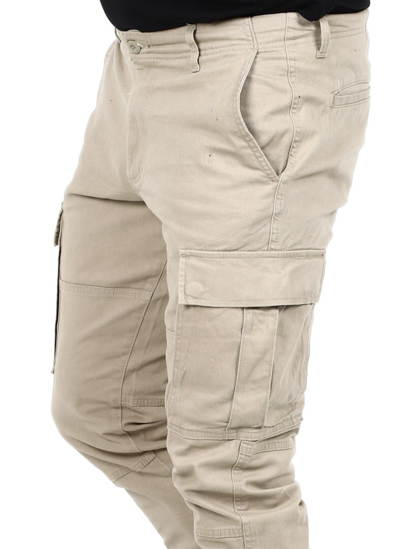 Cargo-byxan designades ursprungligen för den brittiska militären och har flera benfickor för extra praktisk användning. Perfekt för både en avslappnad look eller en stilig outfit, allt beror på hur du stylar den. Vävt tyg är ett starkt och slitstarkt material.