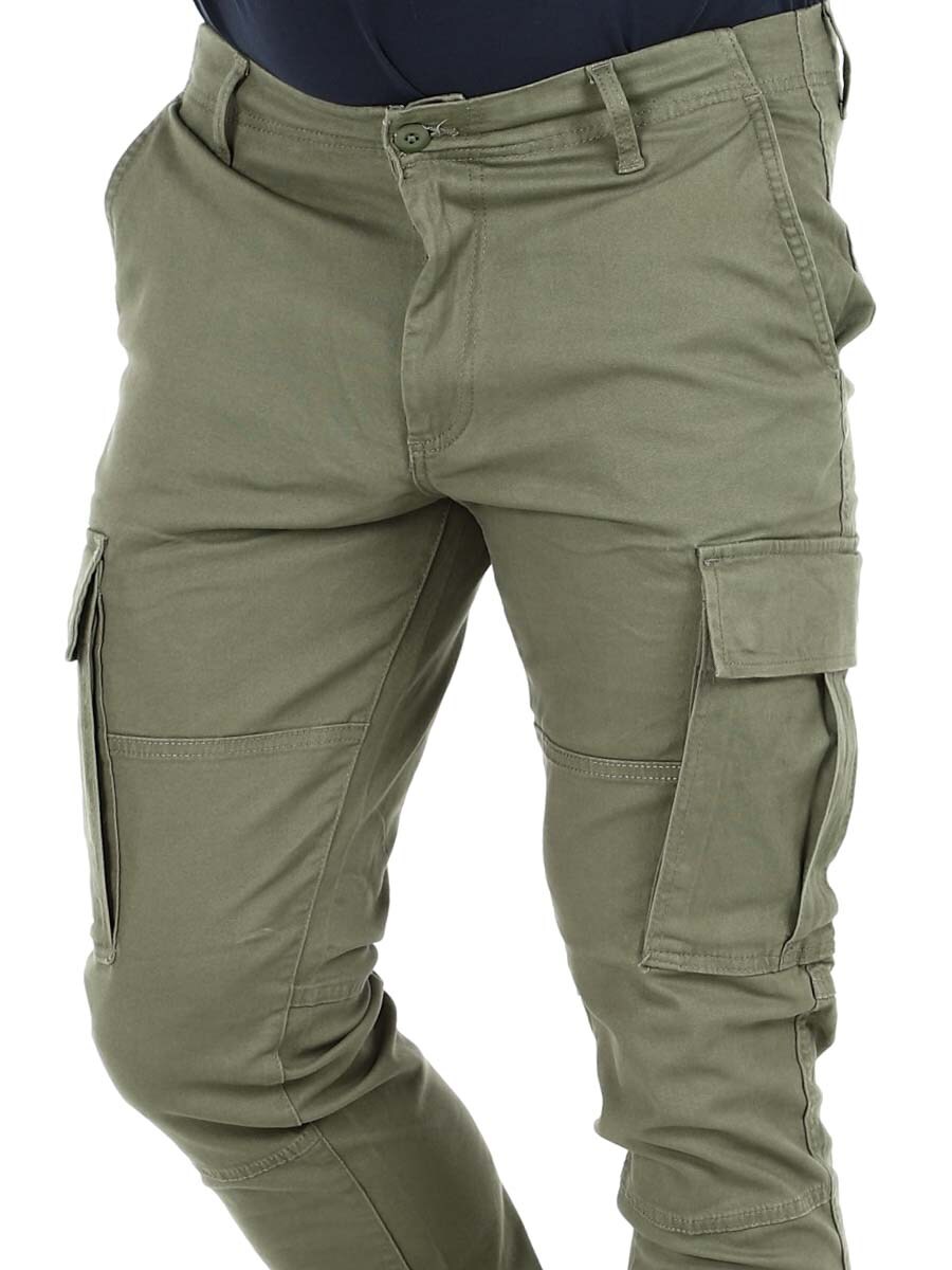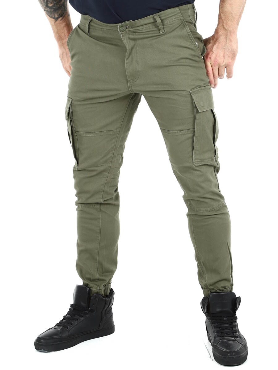 Cargo-byxan designades ursprungligen för den brittiska militären och har flera benfickor för extra praktisk användning. Perfekt för både en avslappnad look eller en stilig outfit, allt beror på hur du stylar den. Vävt tyg är ett starkt och slitstarkt material.