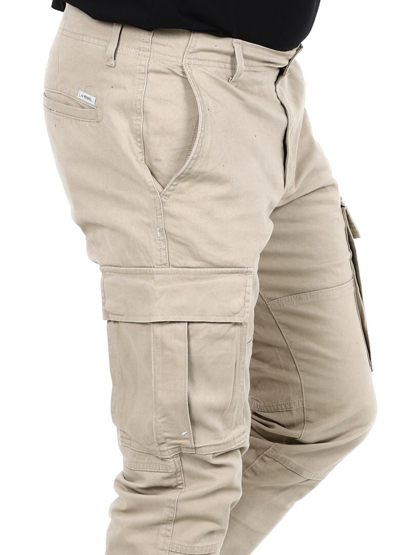 Cargo-byxan designades ursprungligen för den brittiska militären och har flera benfickor för extra praktisk användning. Perfekt för både en avslappnad look eller en stilig outfit, allt beror på hur du stylar den. Vävt tyg är ett starkt och slitstarkt material.