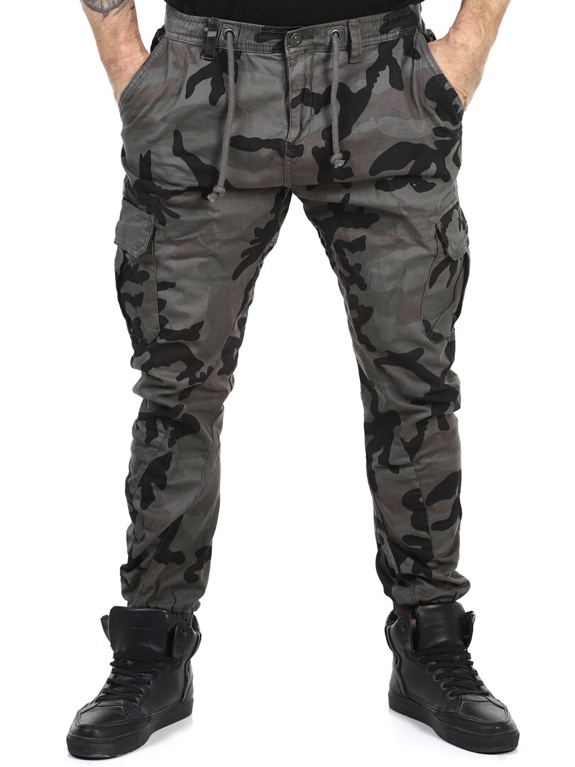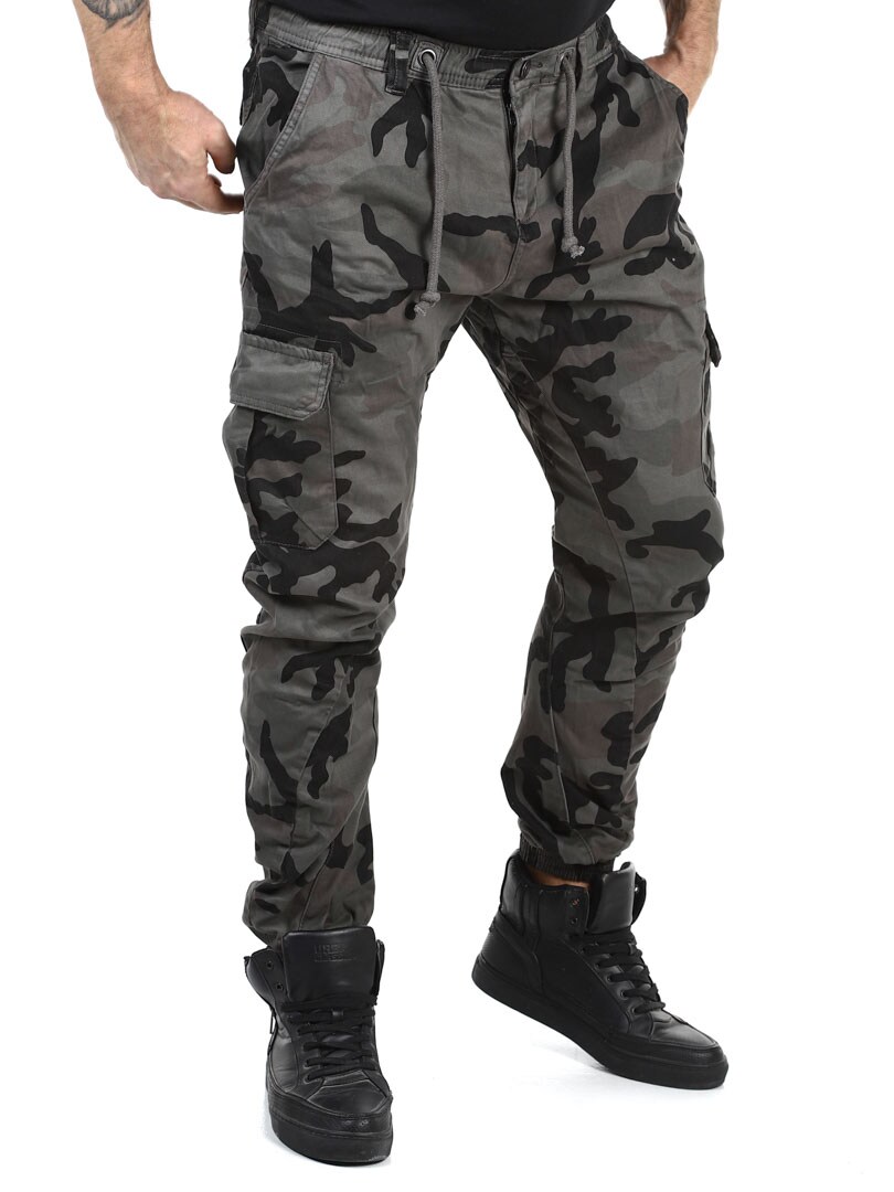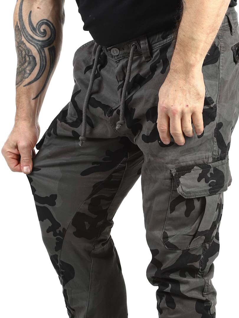 Cargobyxor omdefinierar den typiska joggingbyxlooken från grunden. Det kamouflagemönstrade tyget och de påsydda fickorna i cargostil skapar en medveten stilbrytning mot joggingbyxornas sportiga attityd. Resultatet är helt enkelt både unikt och coolt. Dragsko och elastiska muddar garanterar alltid perfekt passform, medan bomullstyget med stretch garanterar hög komfort.