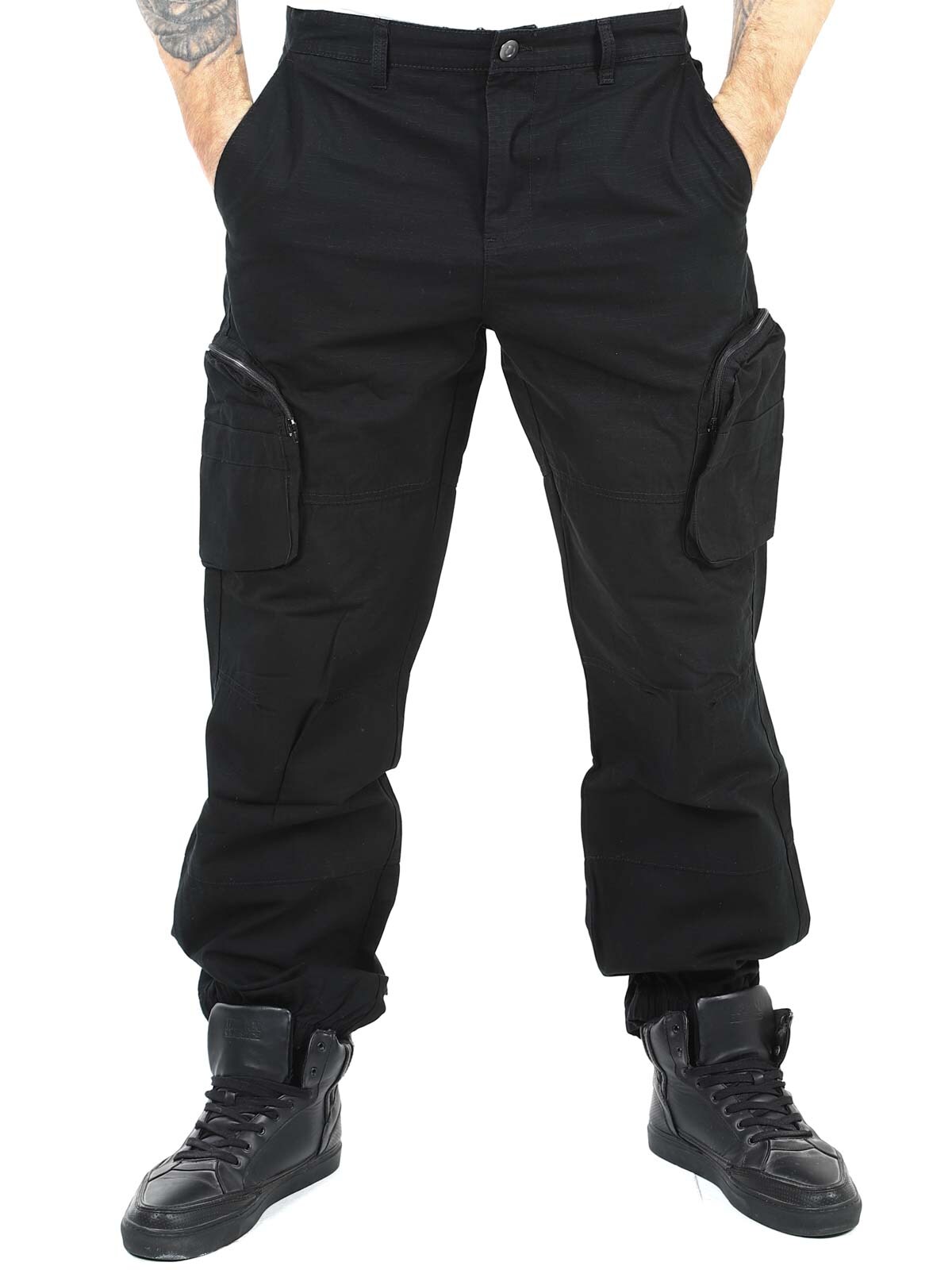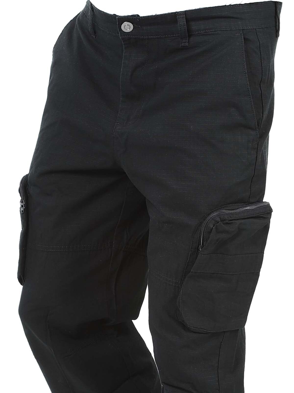 Byxor i slitstarkt ripstop-tyg, känt för sin tåliga och rivsäkra struktur. De har rymliga cargofickor med dragkedja och resårmuddar i bensluten. Passar för både vardagsbruk och utomhusaktiviteter!