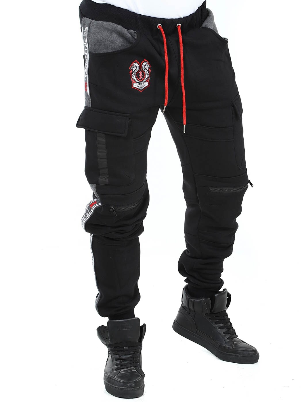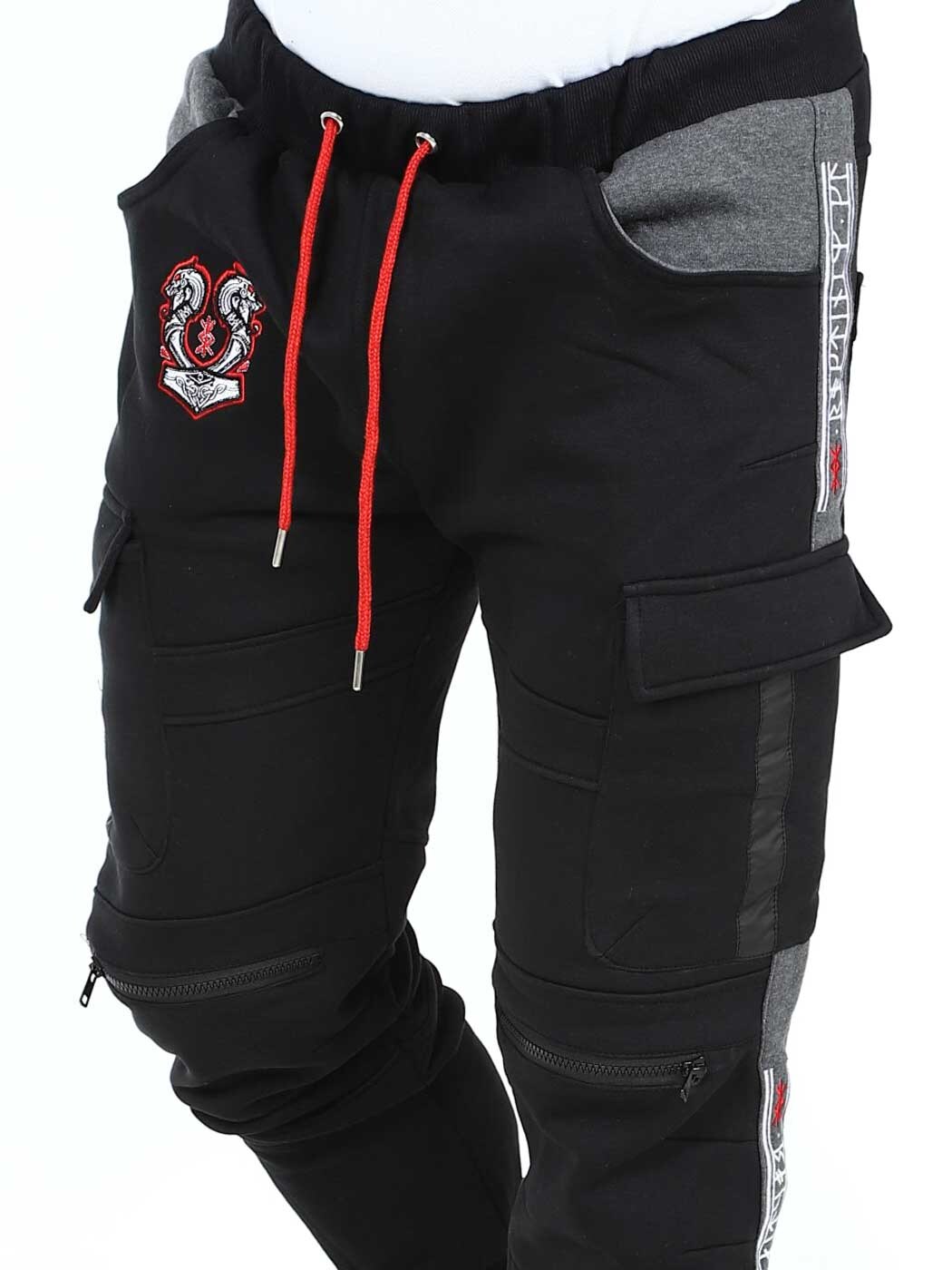 Mjukisbyxor med viking-inspirerade motiv. De har flera fickor och resårmudd i midjan, samt i bensluten. Dragkedjor på benen framtill som kan öppnas och vara lufthål. Dessa unika byxor hittar du endast hos RockDenim!