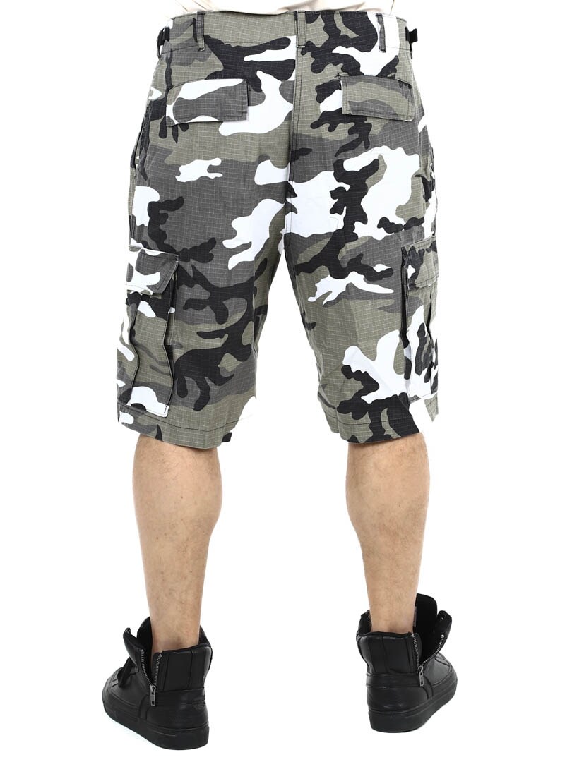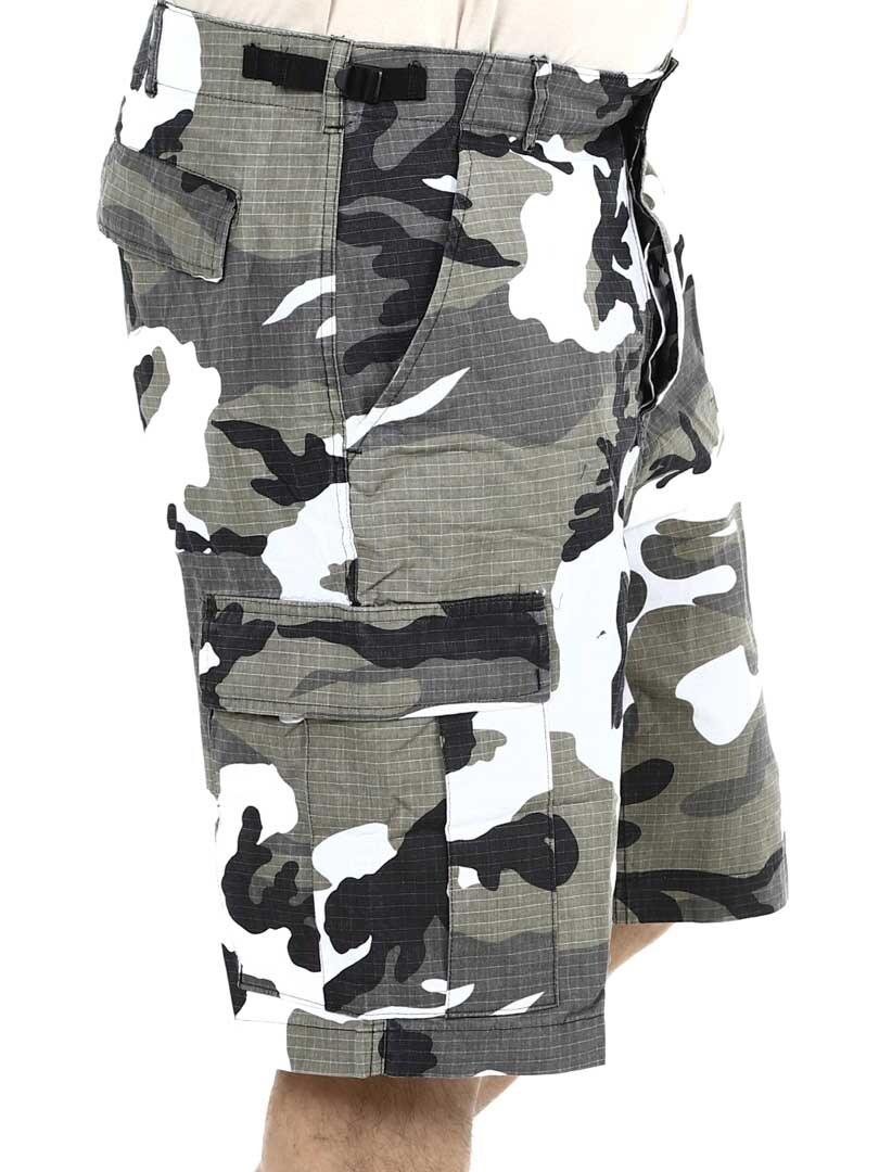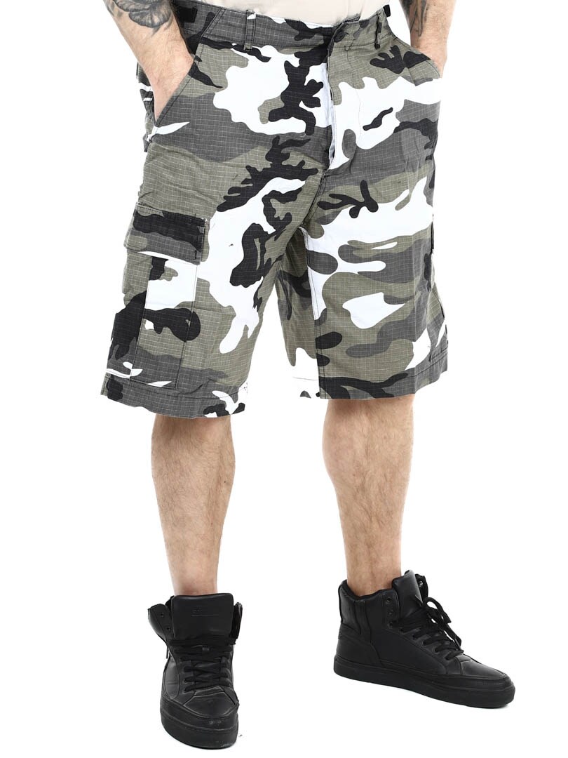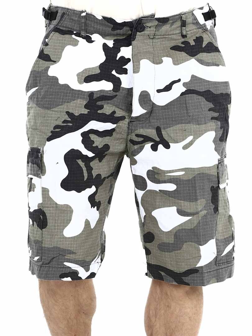 Camomönstrade shorts med bälteshällor i midjan. Dem har gott om fickor, både öppna och stängbara. Klara för allt från äventyr i naturen till en avslappnad dag i stan – de här cargoshortsen med klassiskt camouflagemönster kombinerar stil med praktisk funktion.