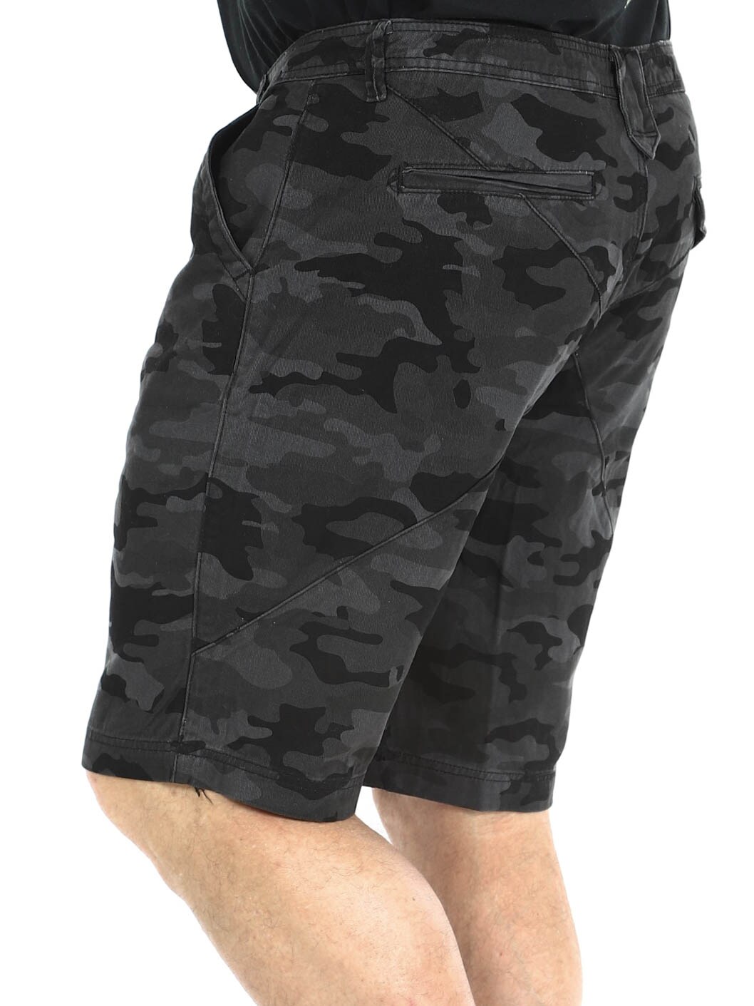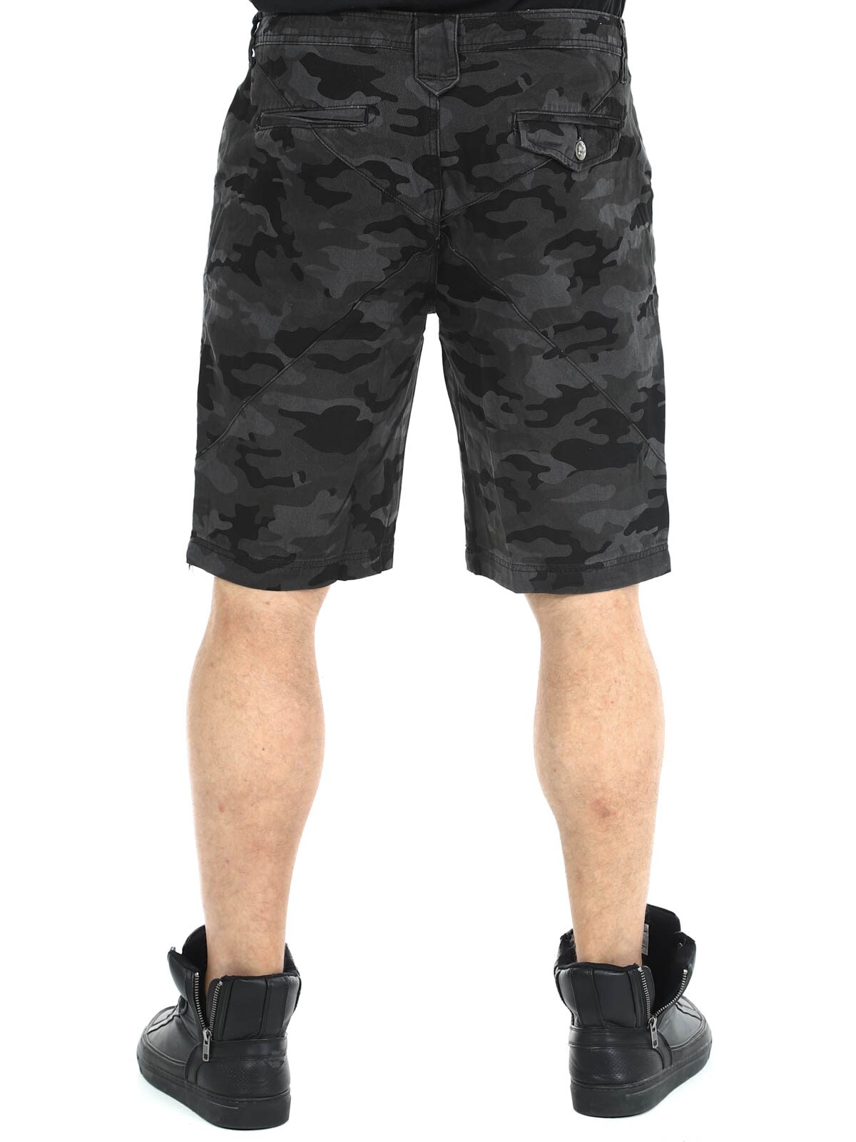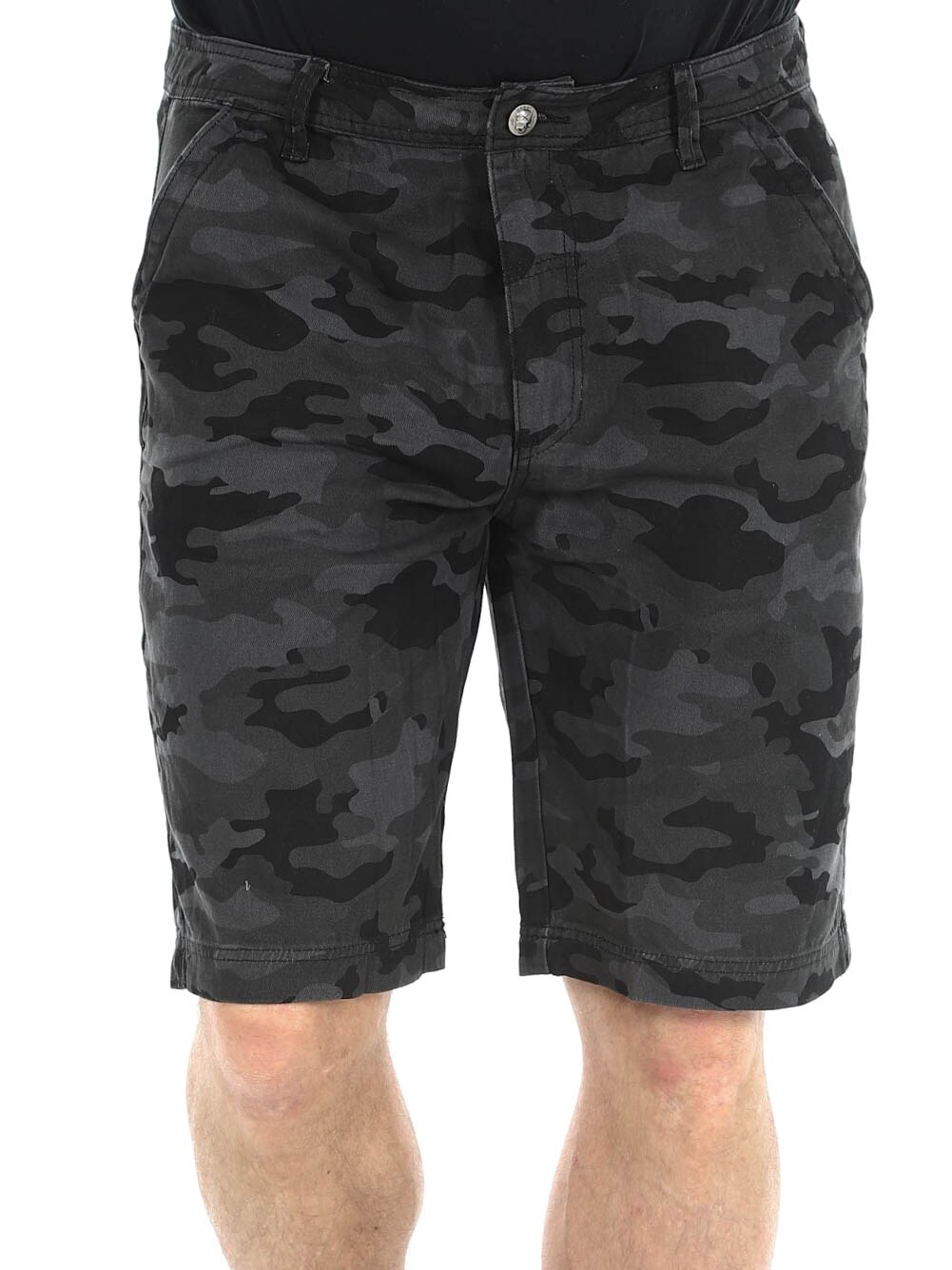 Shorts i denim material med camo mönster. De har fyra fickor samt bälteshällor i midjan. Silvriga knappar med dödskalle motiv för extra attityd.