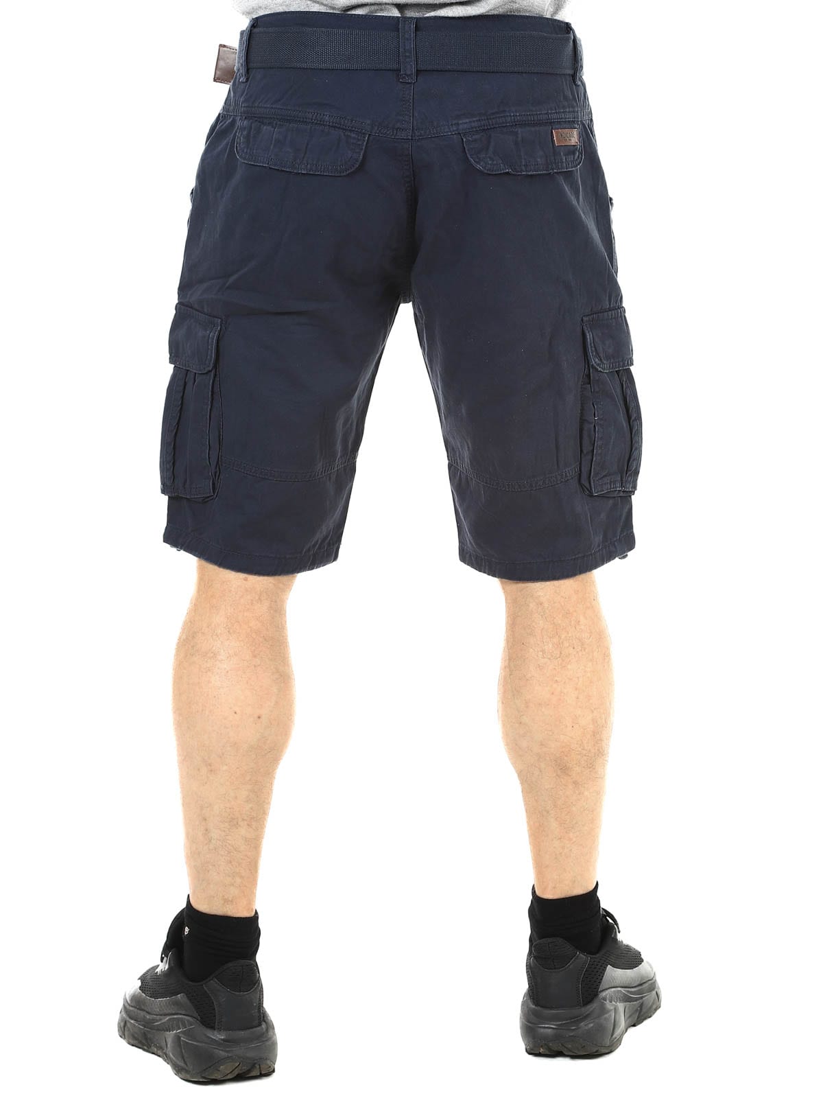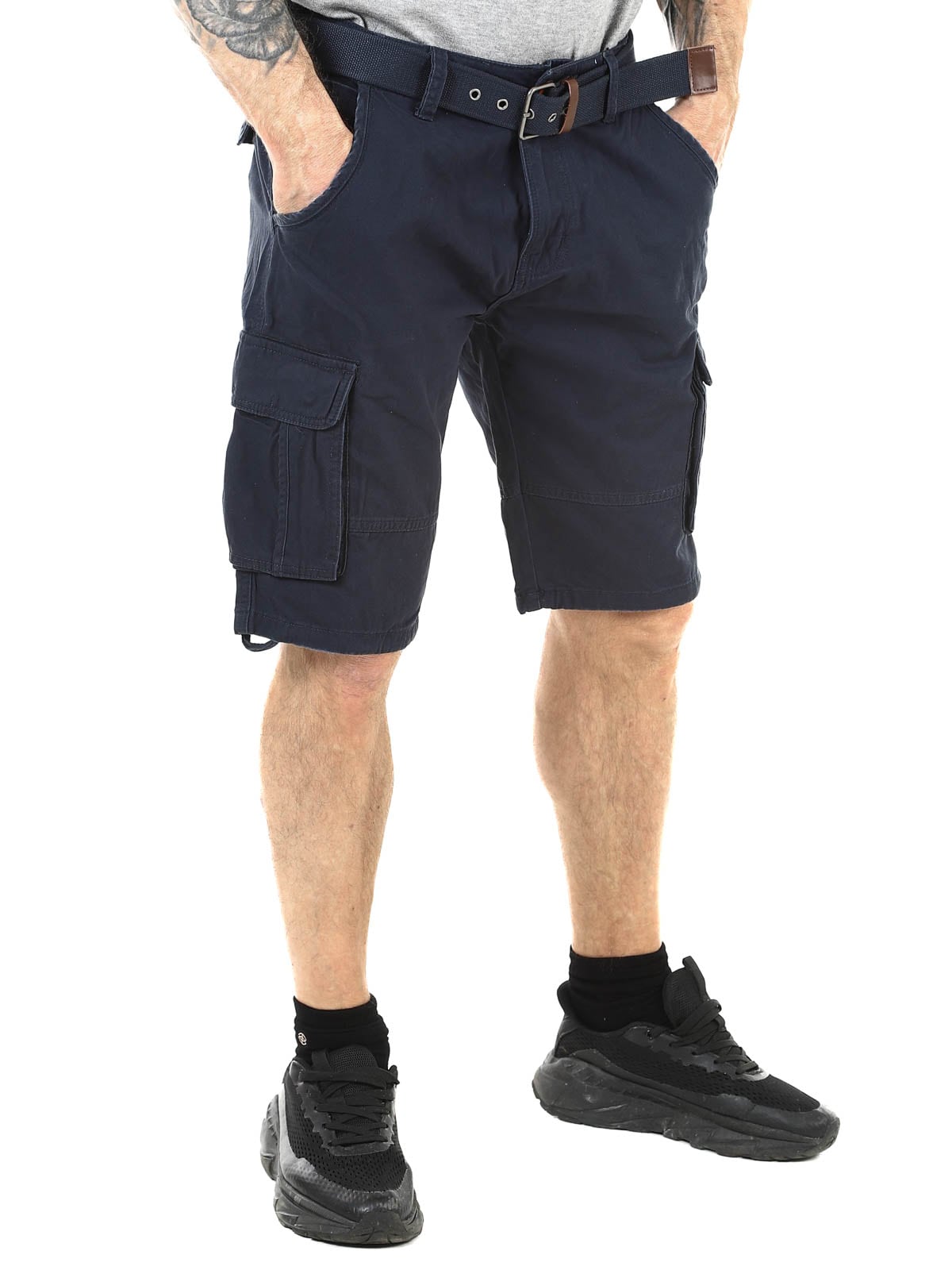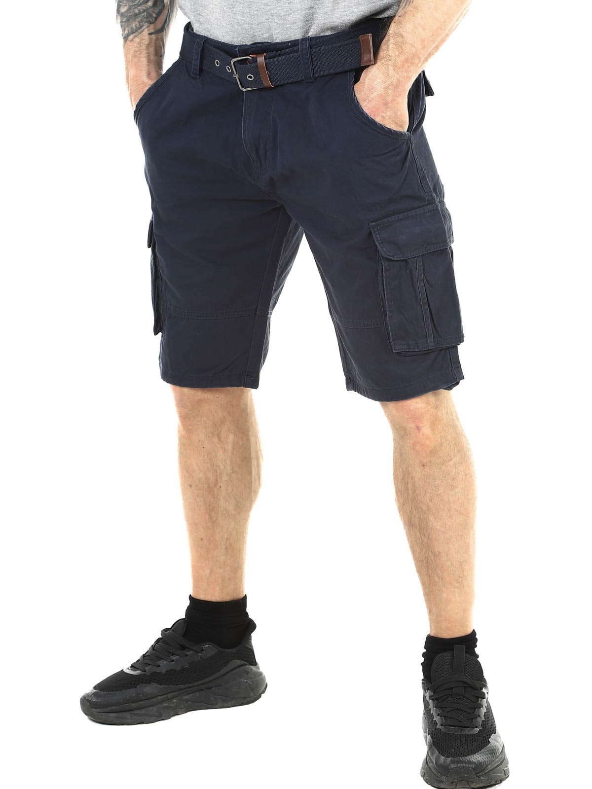 Snygga shorts i slitstark bomull. De har gott om fickor där flera är stängbara. Mellanlång modell med medföljande skärp.