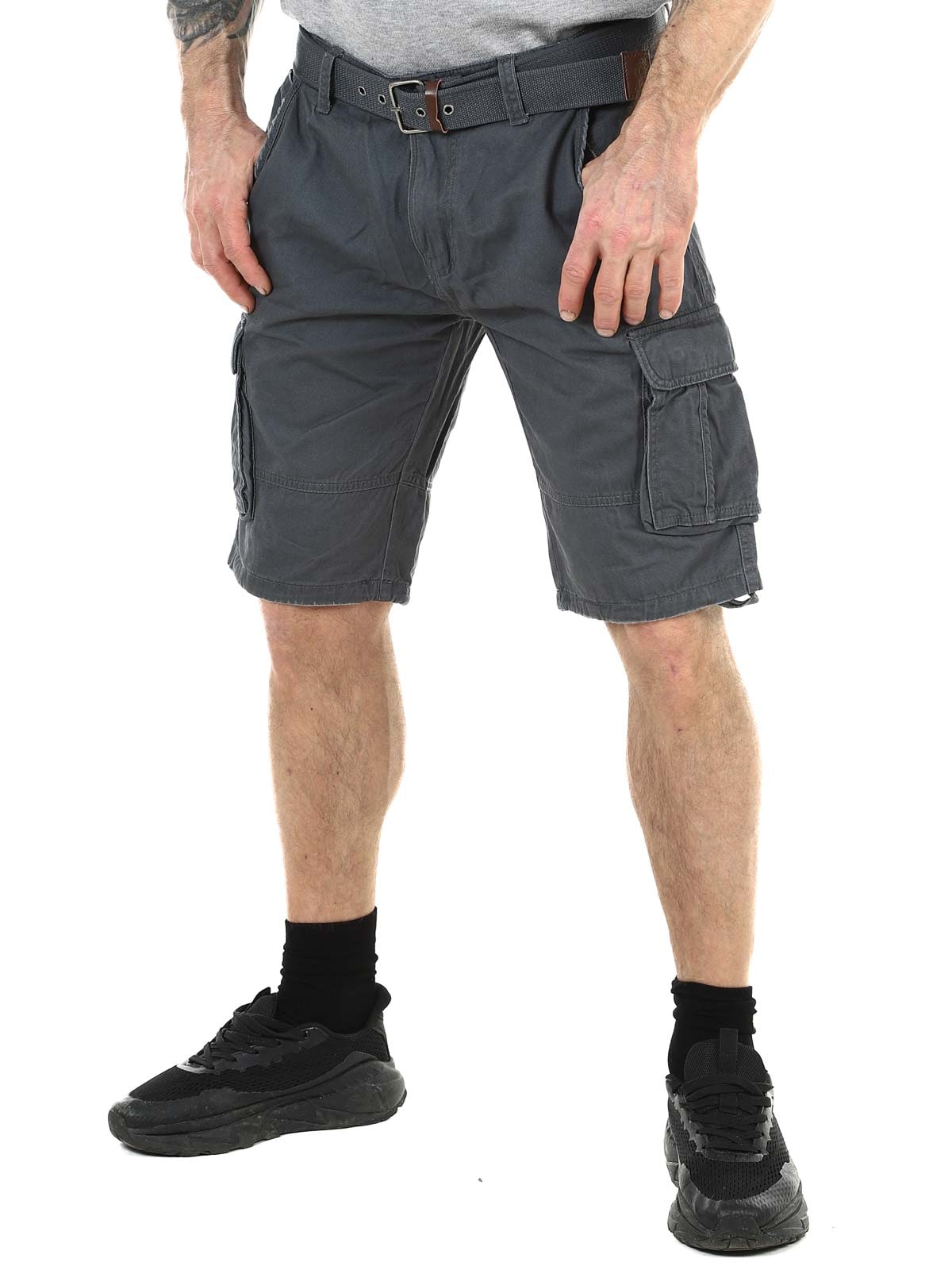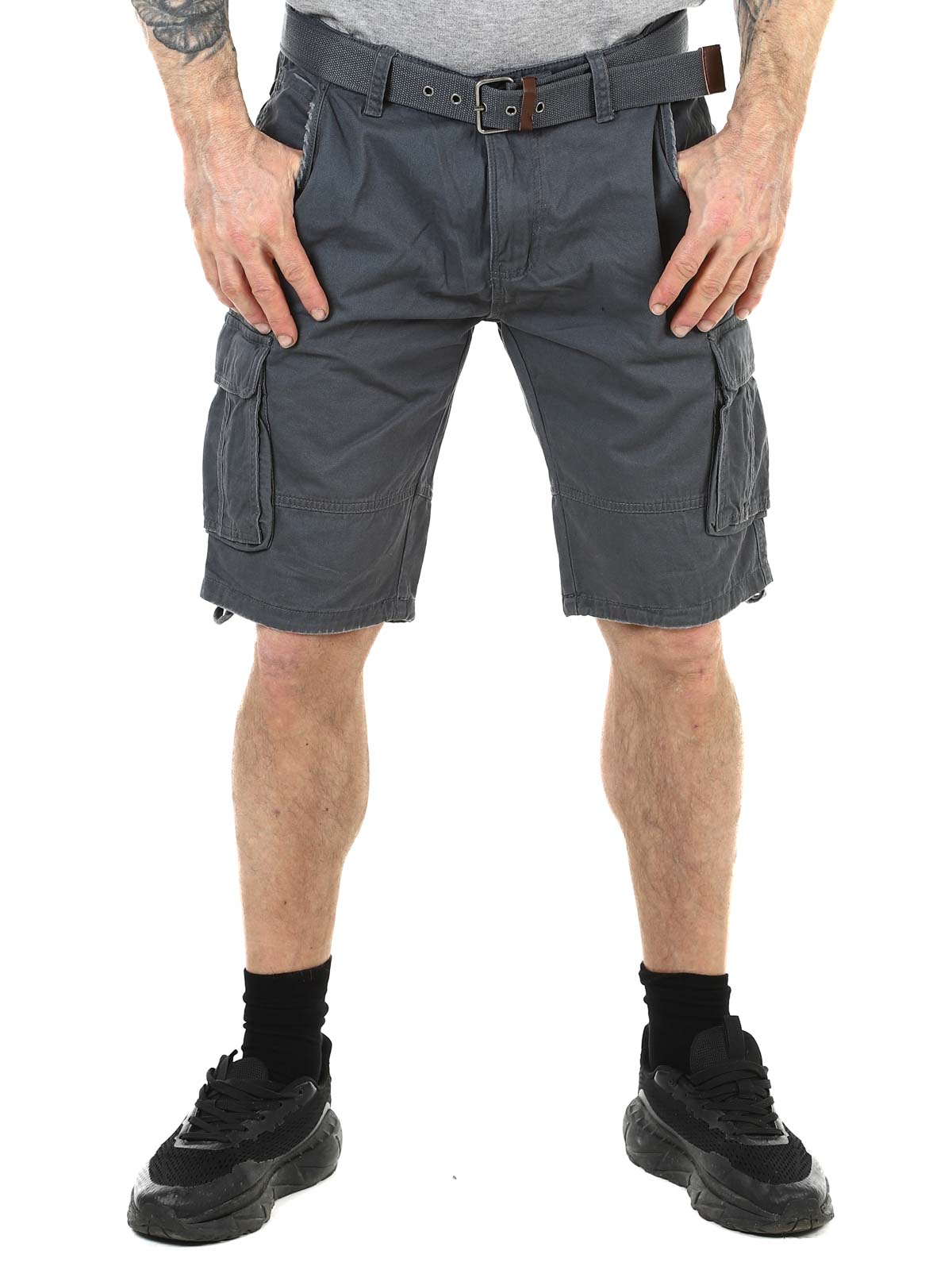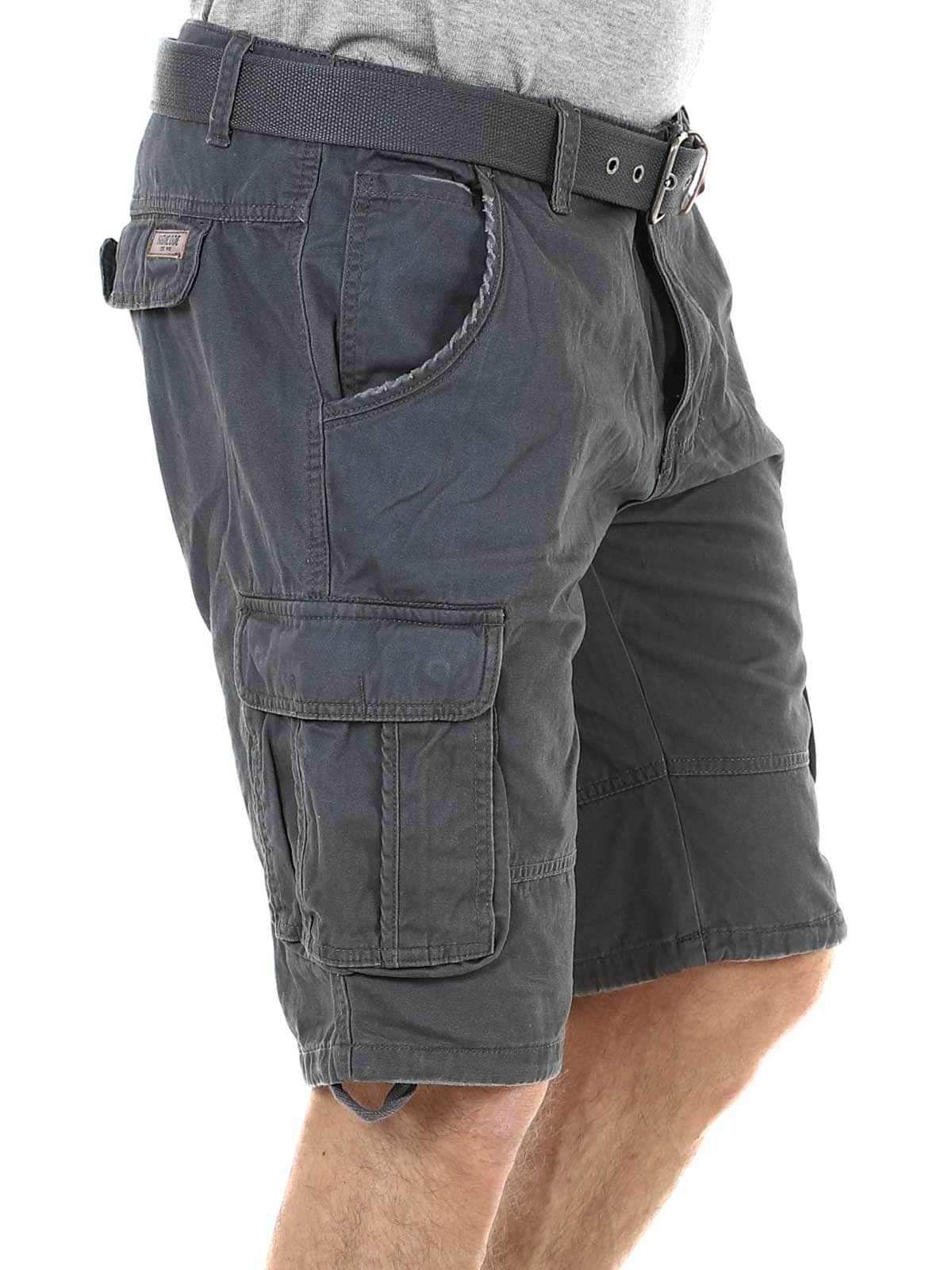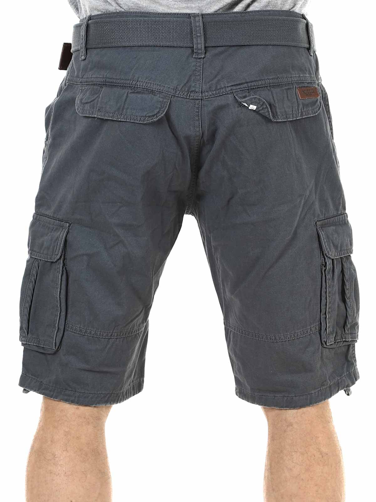 Snygga shorts i slitstark bomull. De har gott om fickor där flera är stängbara. Mellanlång modell med medföljande skärp.