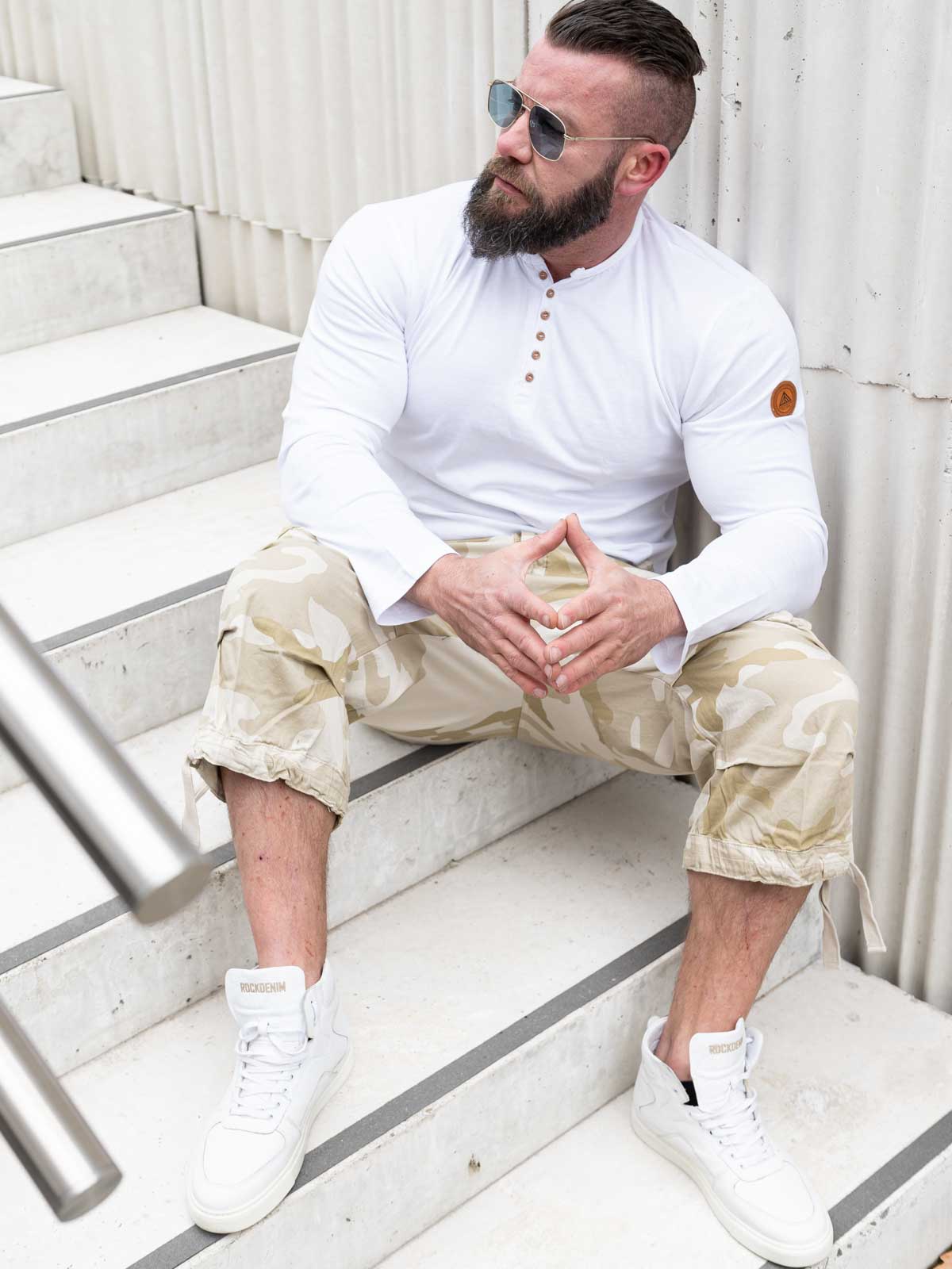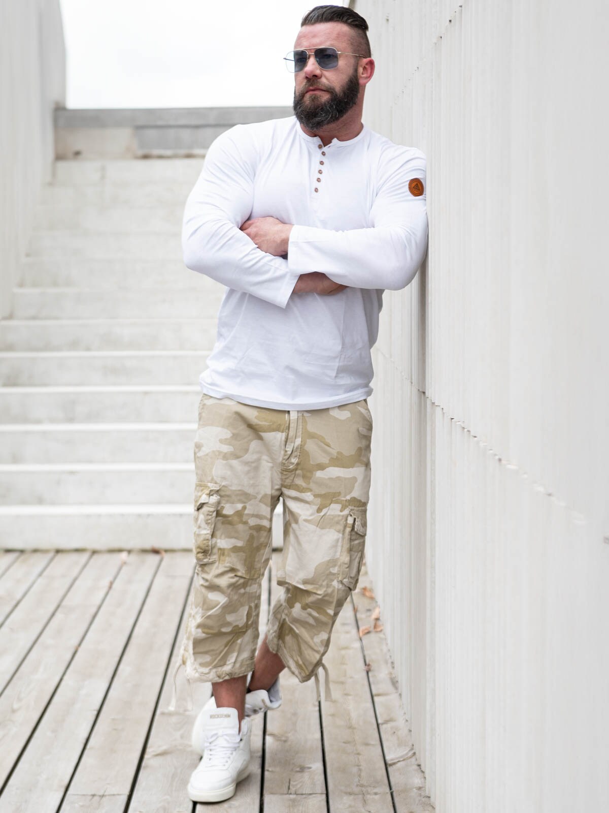 3/4 byxa med baggy passform. Två framfickor och två bakfickor med tryckknapp, samt två stora sidofickor. Snören i bensluten som kan justera vidden.