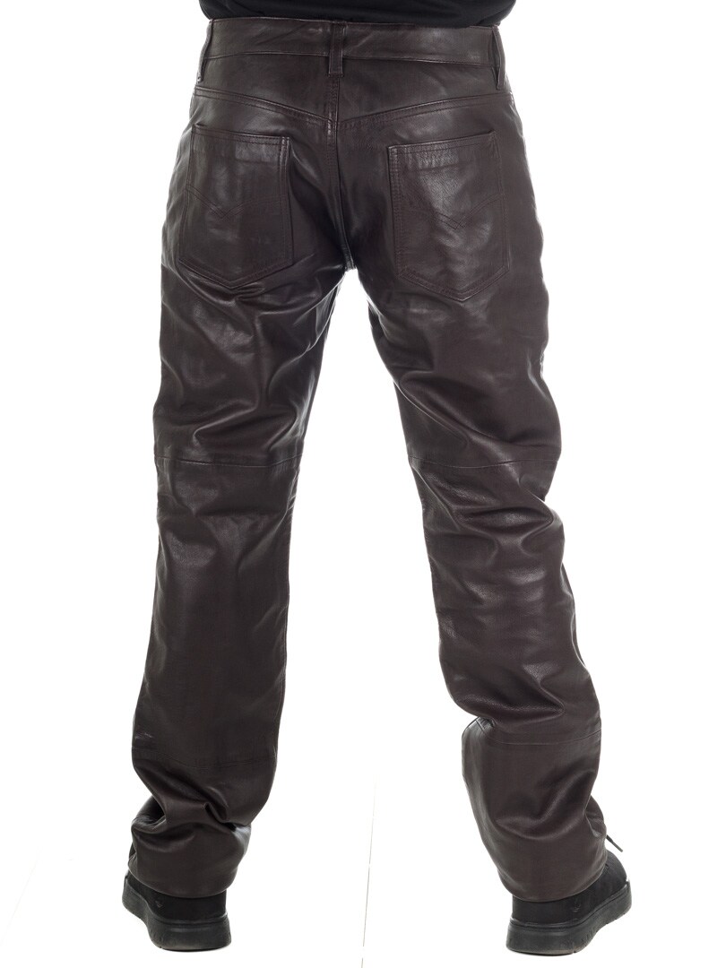 Bruna byxor i äkta läder med klassisk 5-ficks design. Tillverkad i mjukt läder med insida i polyester som gör att dem sitter bekvämt på kroppen. Vill du ha en skön byxa med attityd så har du hittat rätt!