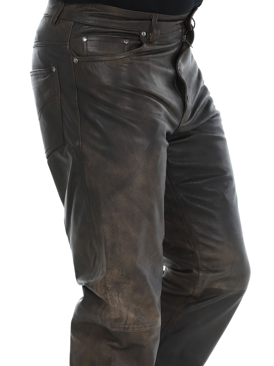 Svarta byxor i äkta läder med klassisk 5-ficks design. Tillverkad i mjukt läder med insida i polyester som gör att dem sitter bekvämt på kroppen. Vill du ha en skön byxa med attityd så har du hittat rätt!