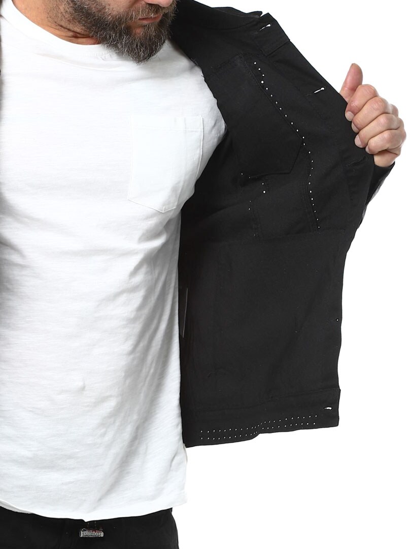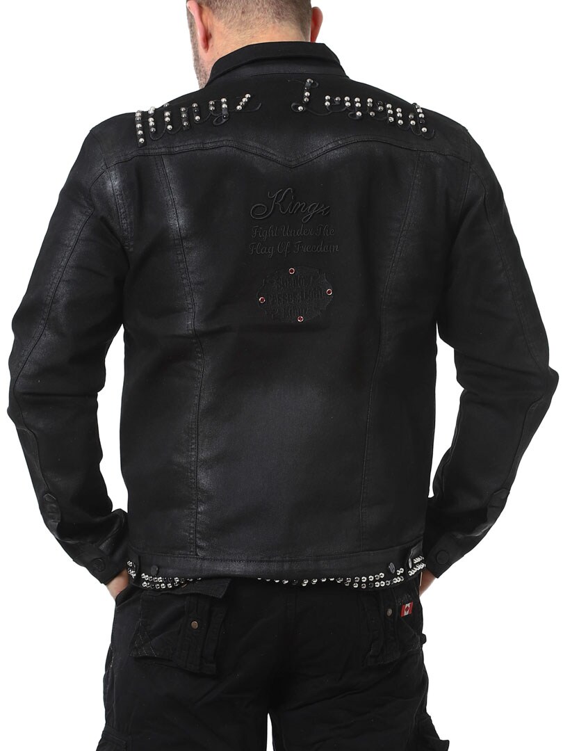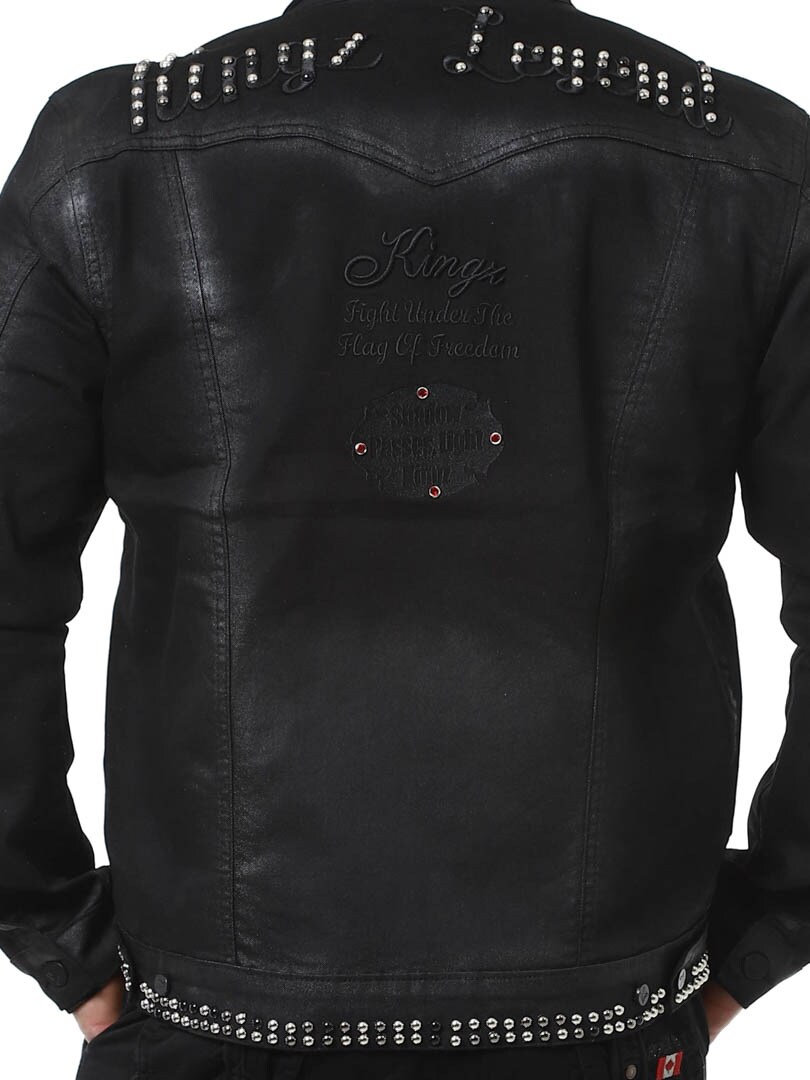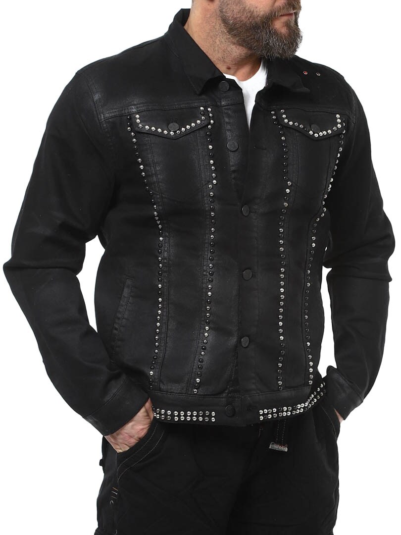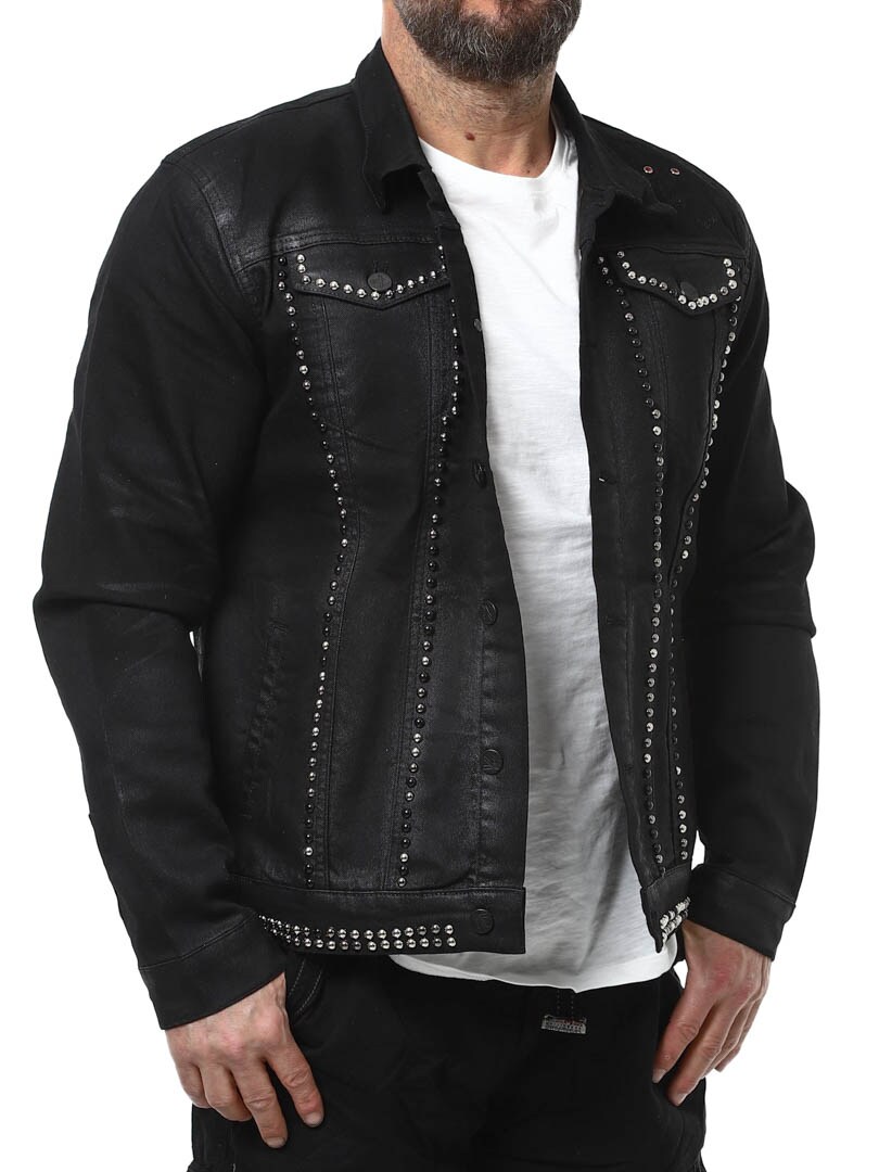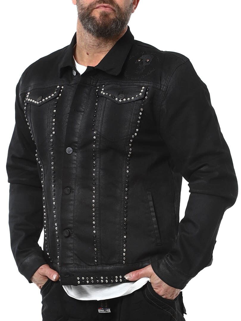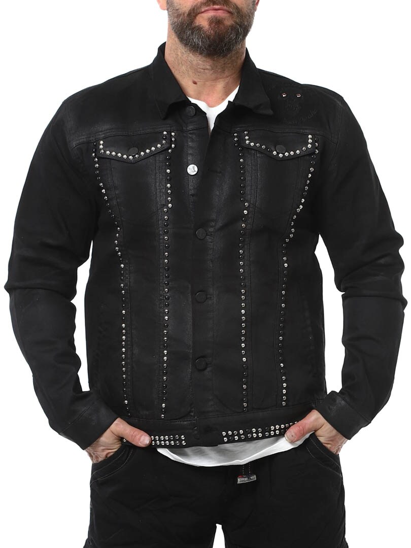 Jeansjacka i stretchigt och bekvämt denim material. Tufft detaljerad med runda nitar och skräddat tryck. Den har krage, fyra framfickor och stängs med knappar. Perfekt jacka för dig som vill sticka ut!
