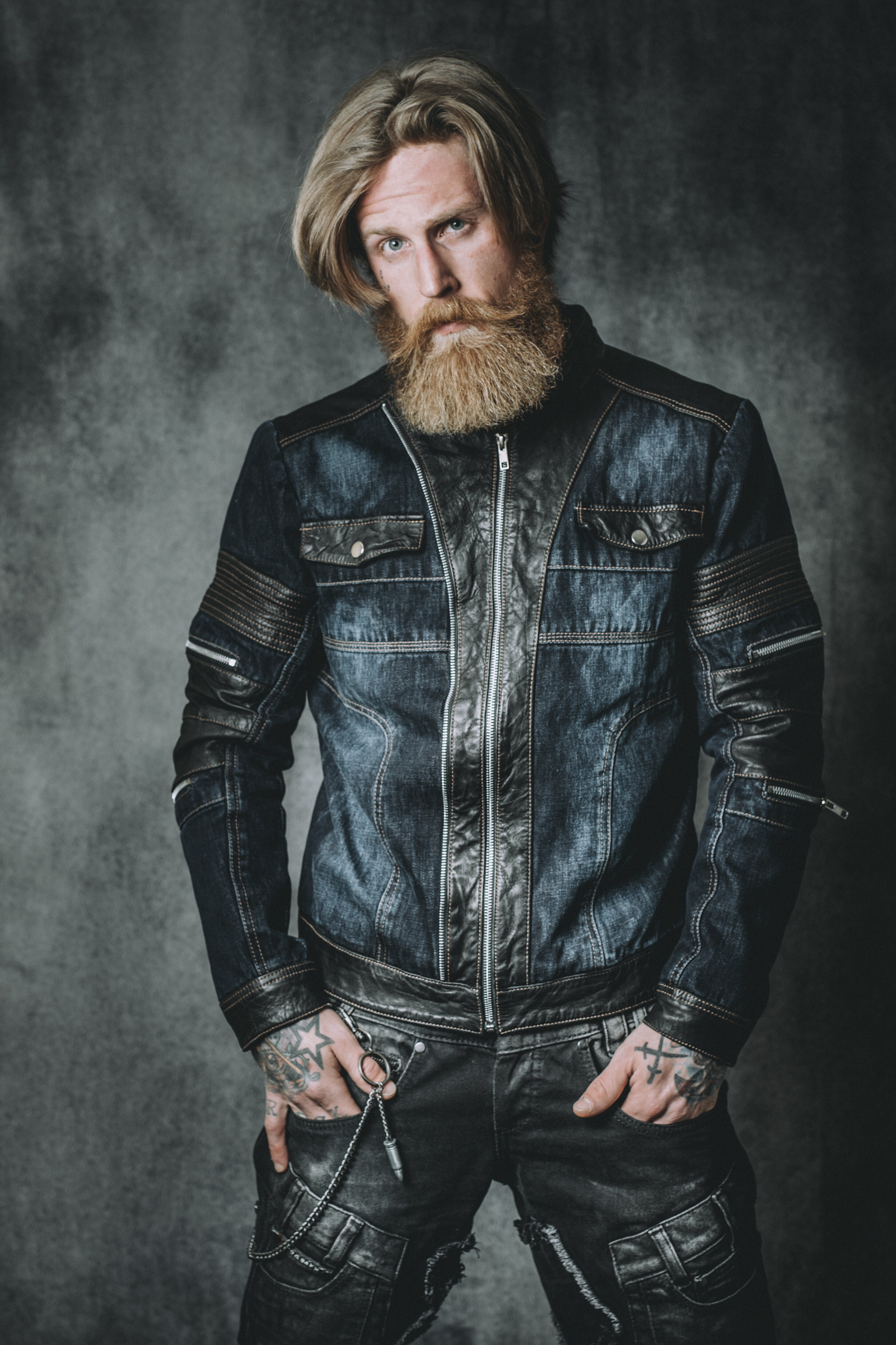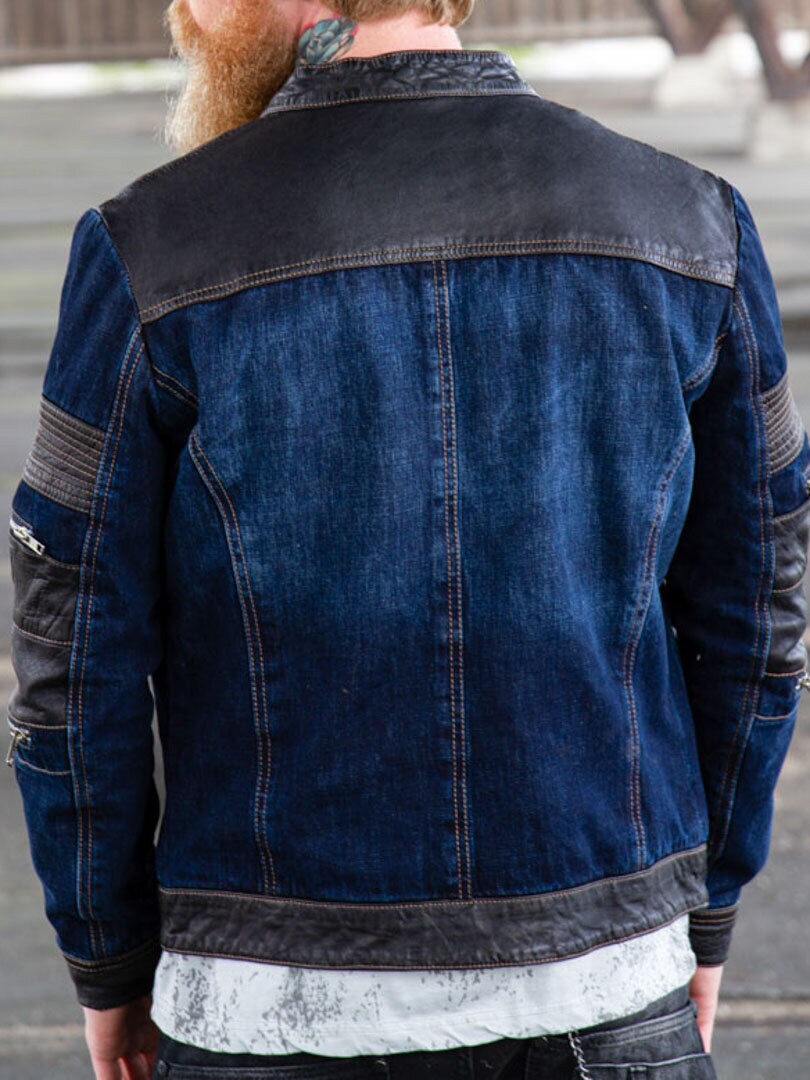 Jacka med den bästa kombon - denim och läder! Gott om fickor, både stängbara och öppna. Grova dragkedjor i silver vid fickor och jacköppning. Exklusiv på Rockdenim.com!