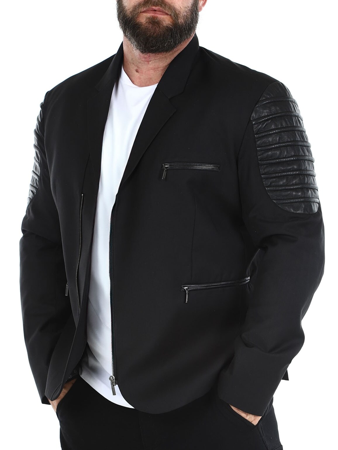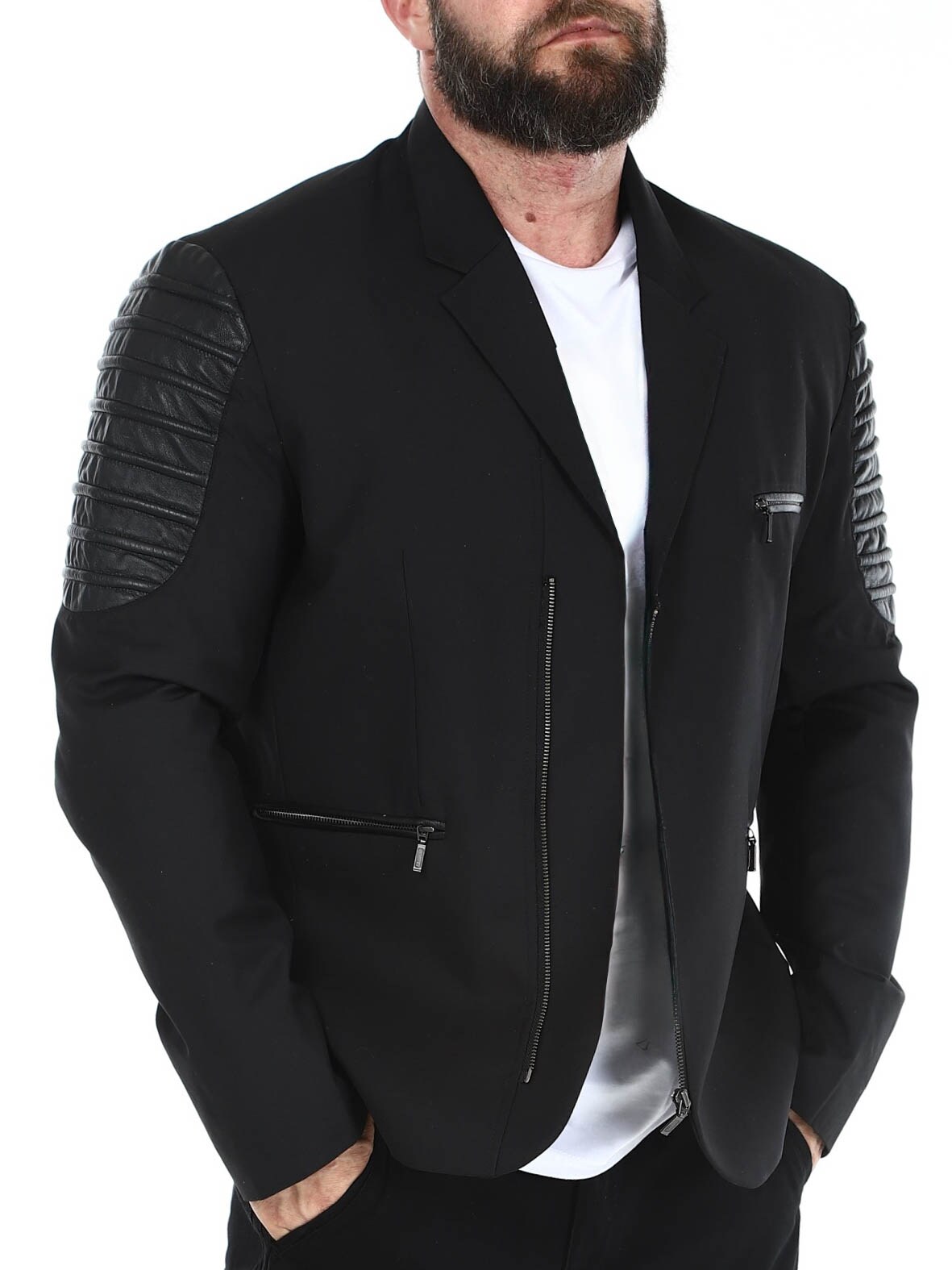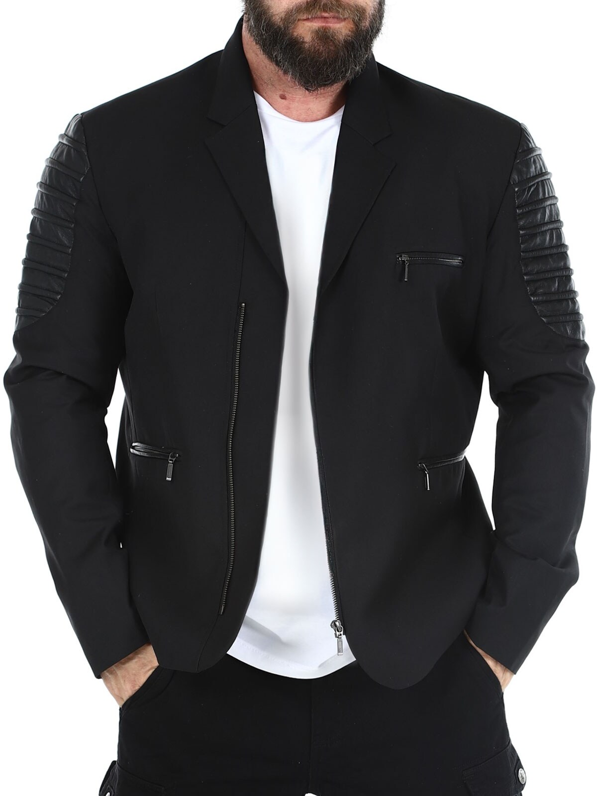 Bomullskavaj med dragkedjestängning och partier i läderimitation. Den har tre framfickor med dragkedja, samt tre öppna innerfickor. Rockig blazer som endast finns hos RockDenim!