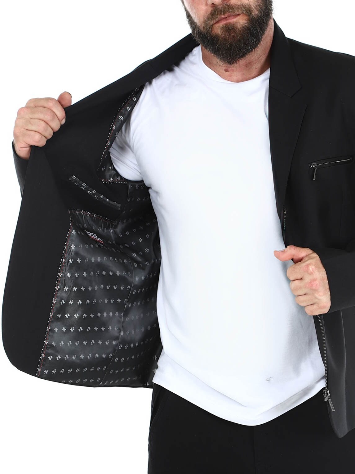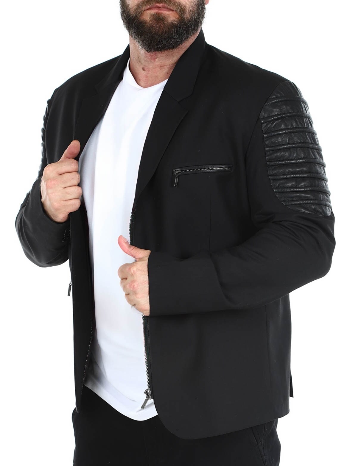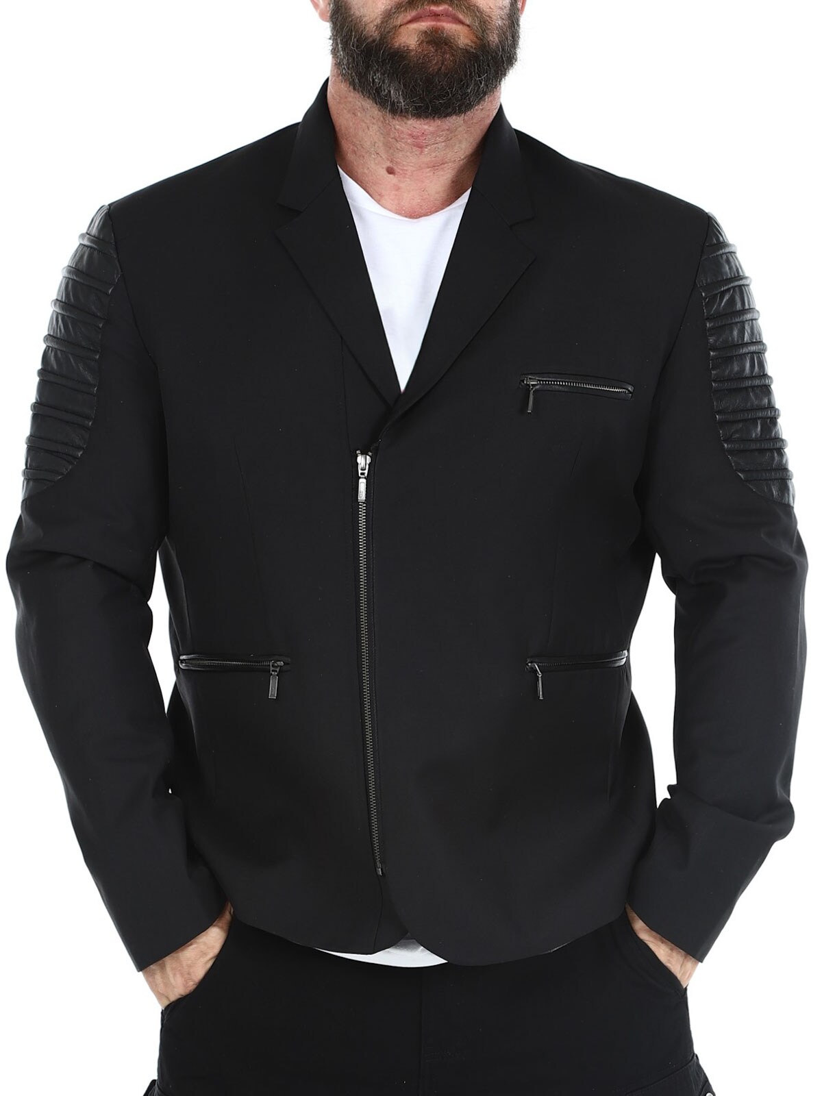 Bomullskavaj med dragkedjestängning och partier i läderimitation. Den har tre framfickor med dragkedja, samt tre öppna innerfickor. Rockig blazer som endast finns hos RockDenim!