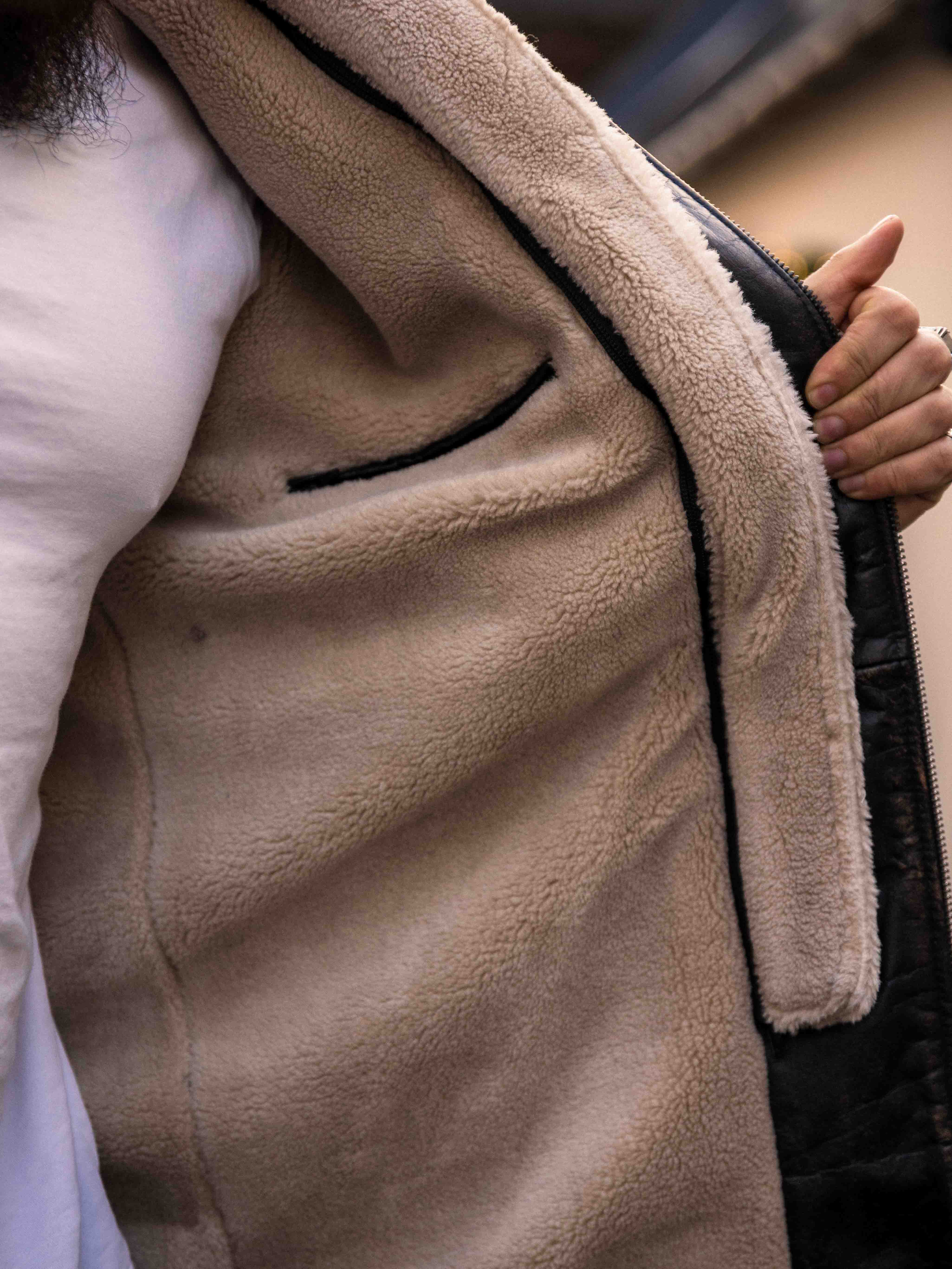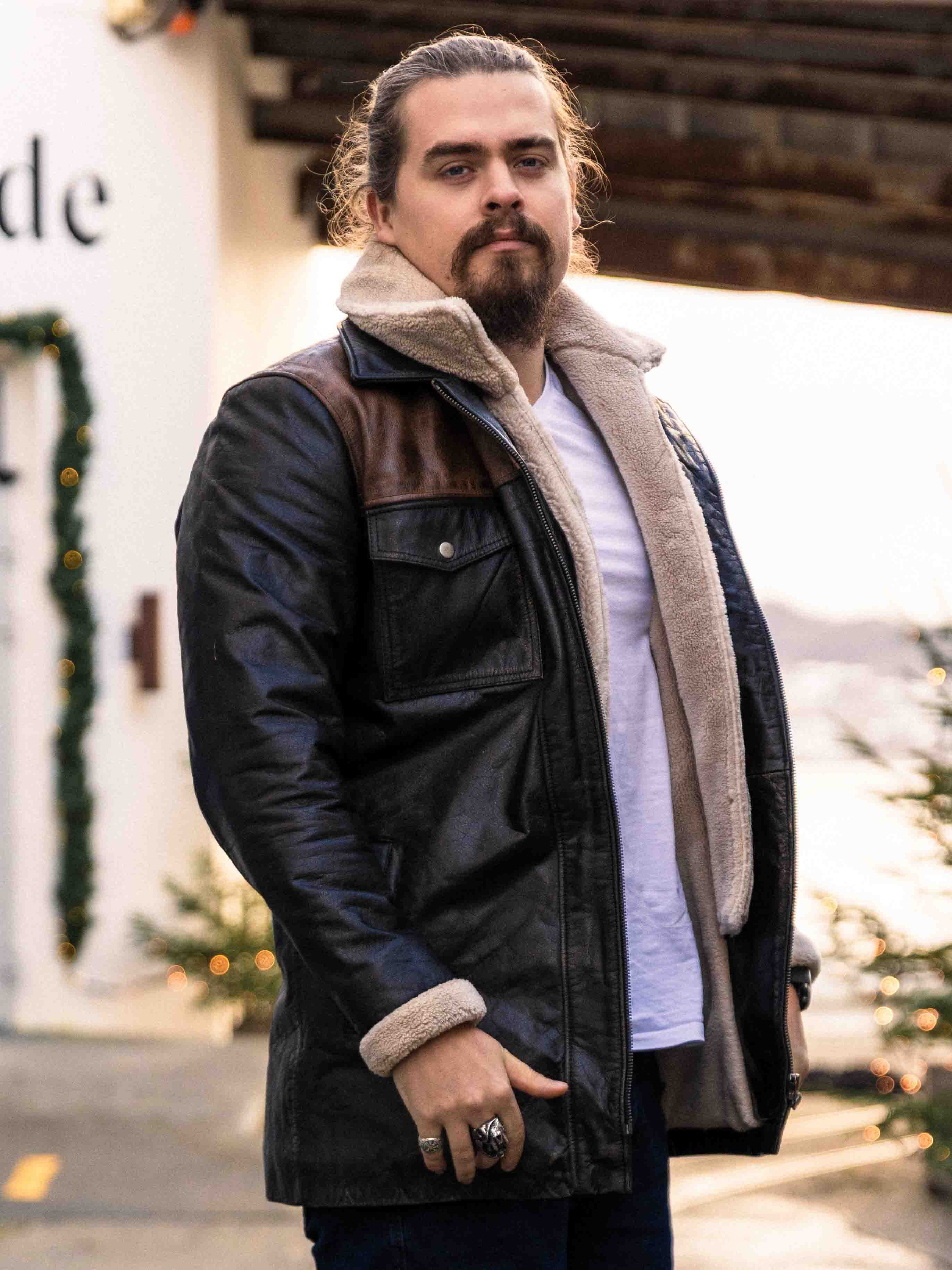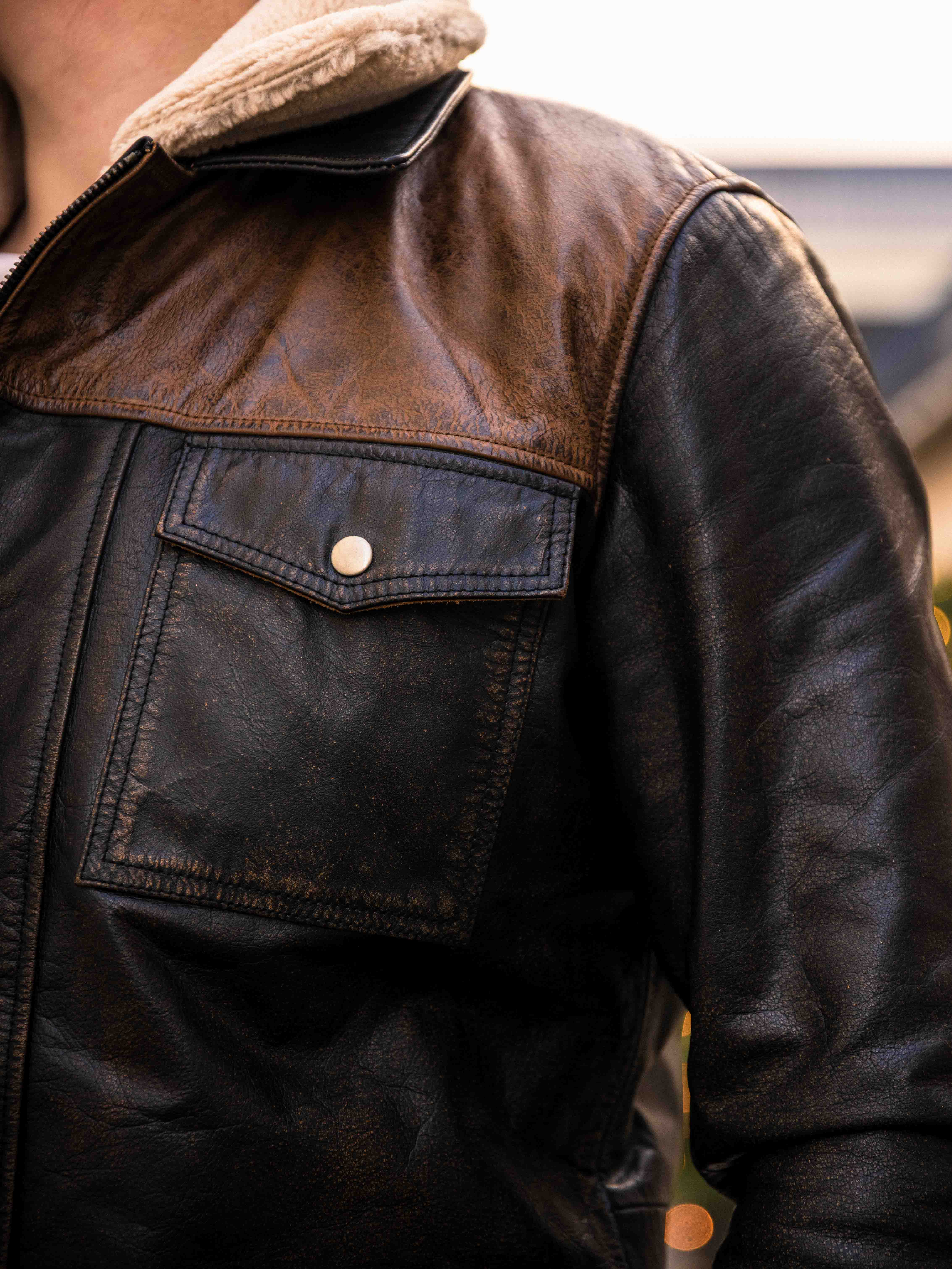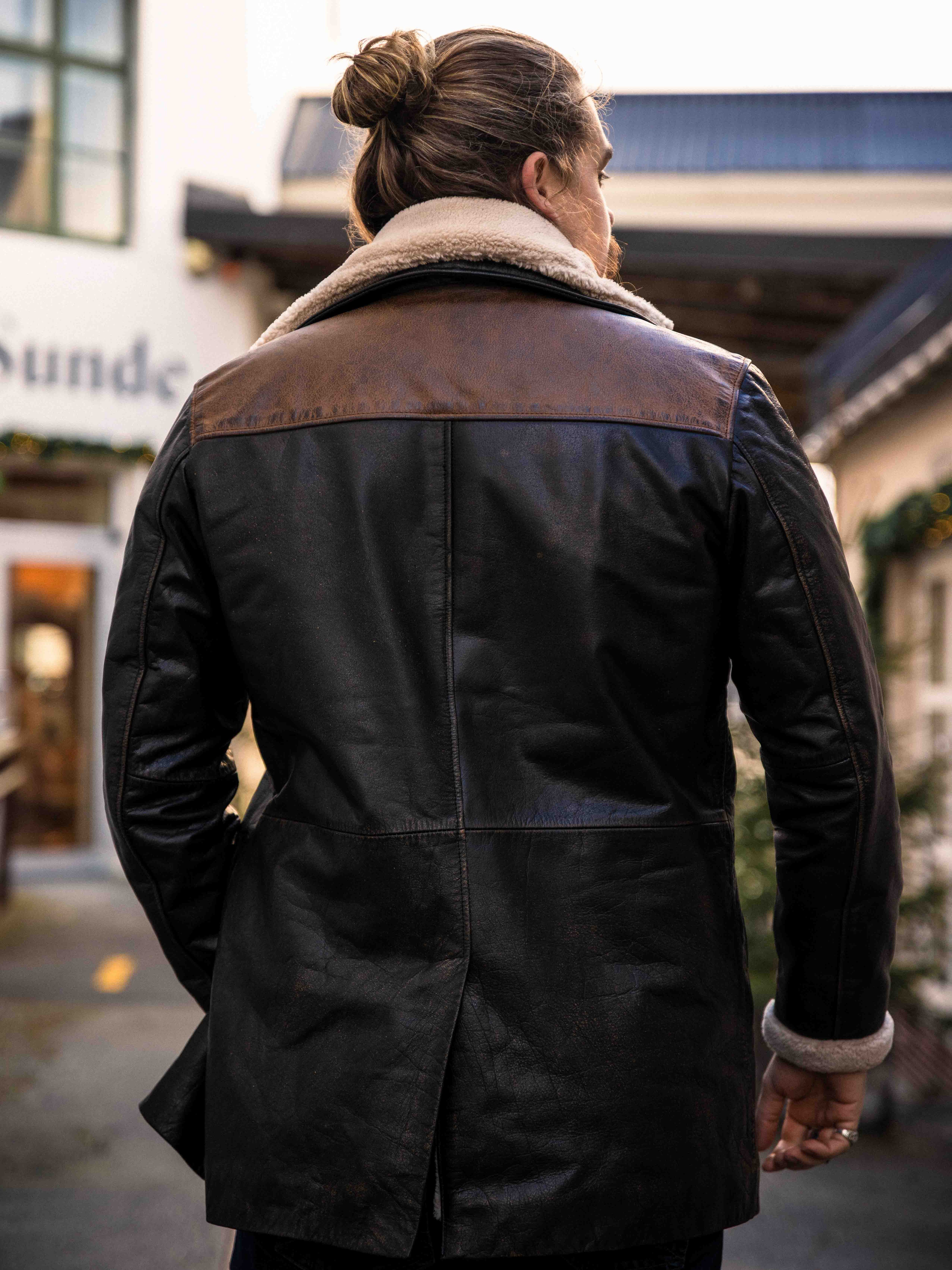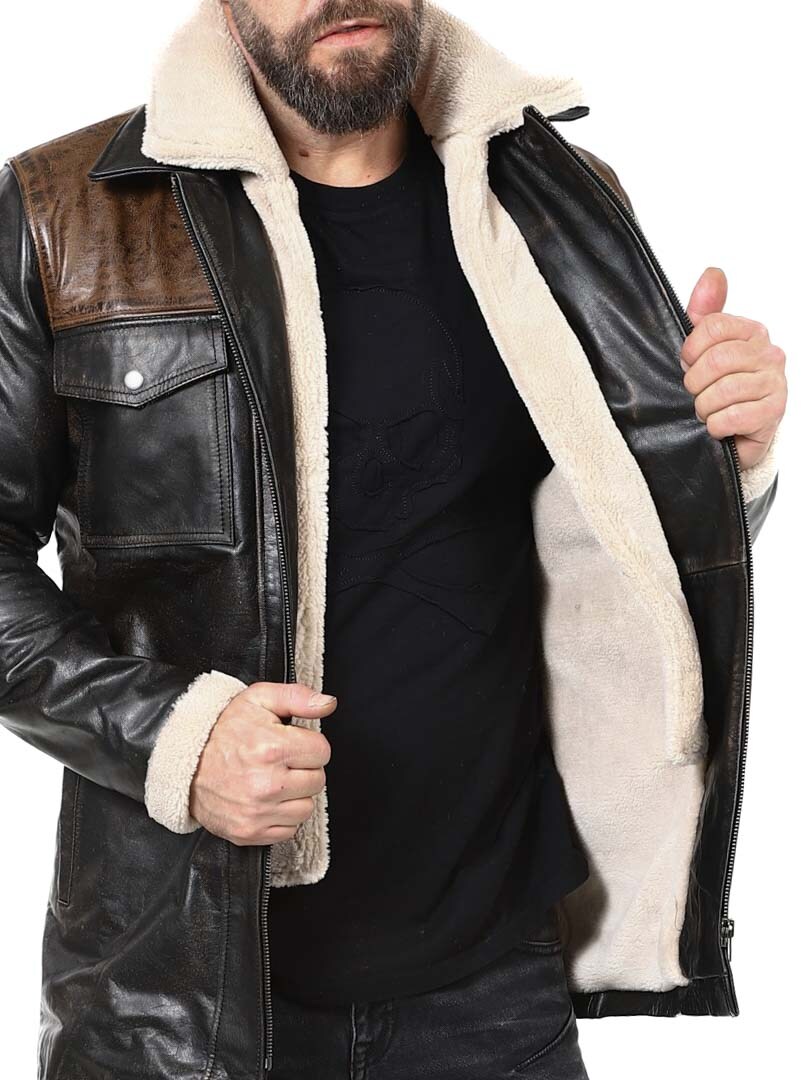 Robust och kraftfull jacka i äkta buffelläder med en design som utstrålar självsäkerhet och attityd. Den kombinerar svart läder med kontrasterande bruna axelpartier för en distinkt look. Insidan är fodrad med varmt teddyfoder som ger komfort och värme under kalla dagar. Jackan har flera fickor och avtagbar teddykrage så att du lätt kan variera din look efter stil och väder. Denna jacka är för mannen som kräver stil, styrka och hållbar kvalitet – exklusivt hos RockDenim!