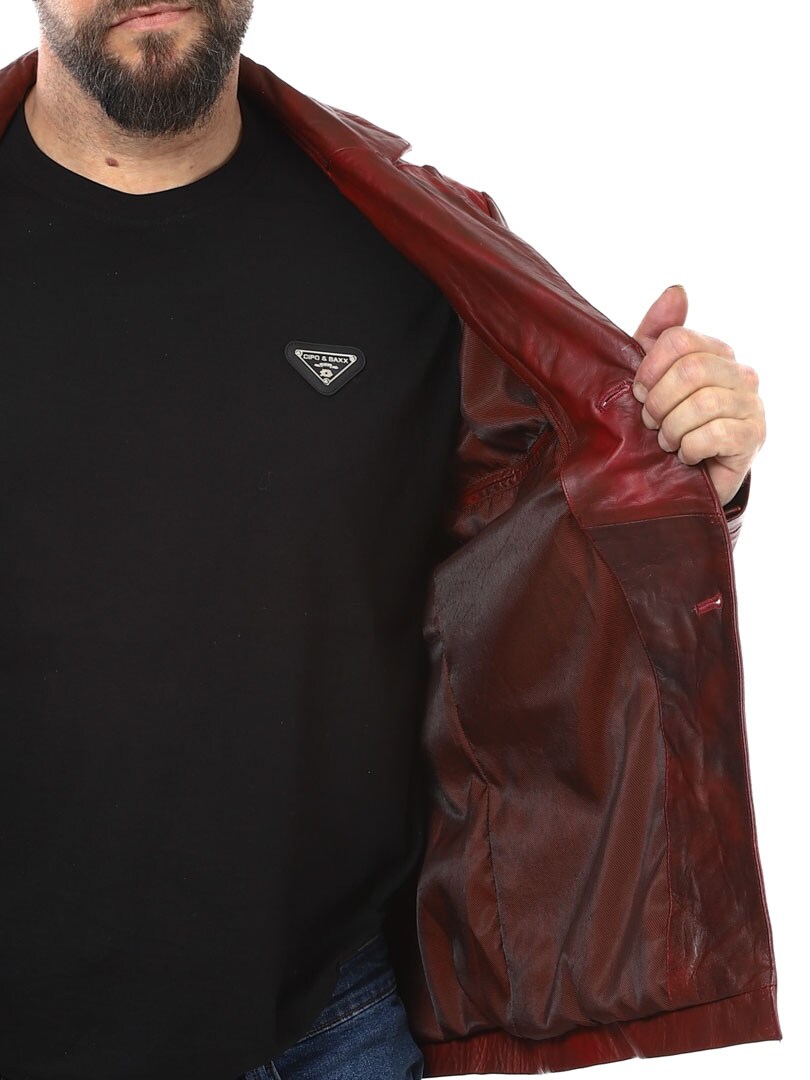 Rejäl skinnjacka i en tuff röd färg som får dig att sticka ut ur mängden. Jackan är reglerbar i ärmsluten, har två framfickor samt två innerfickor. Ge din garderob ett lyft med denna jacka som både är en investering i stil och komfort. Finns endast hos Rockdenim!