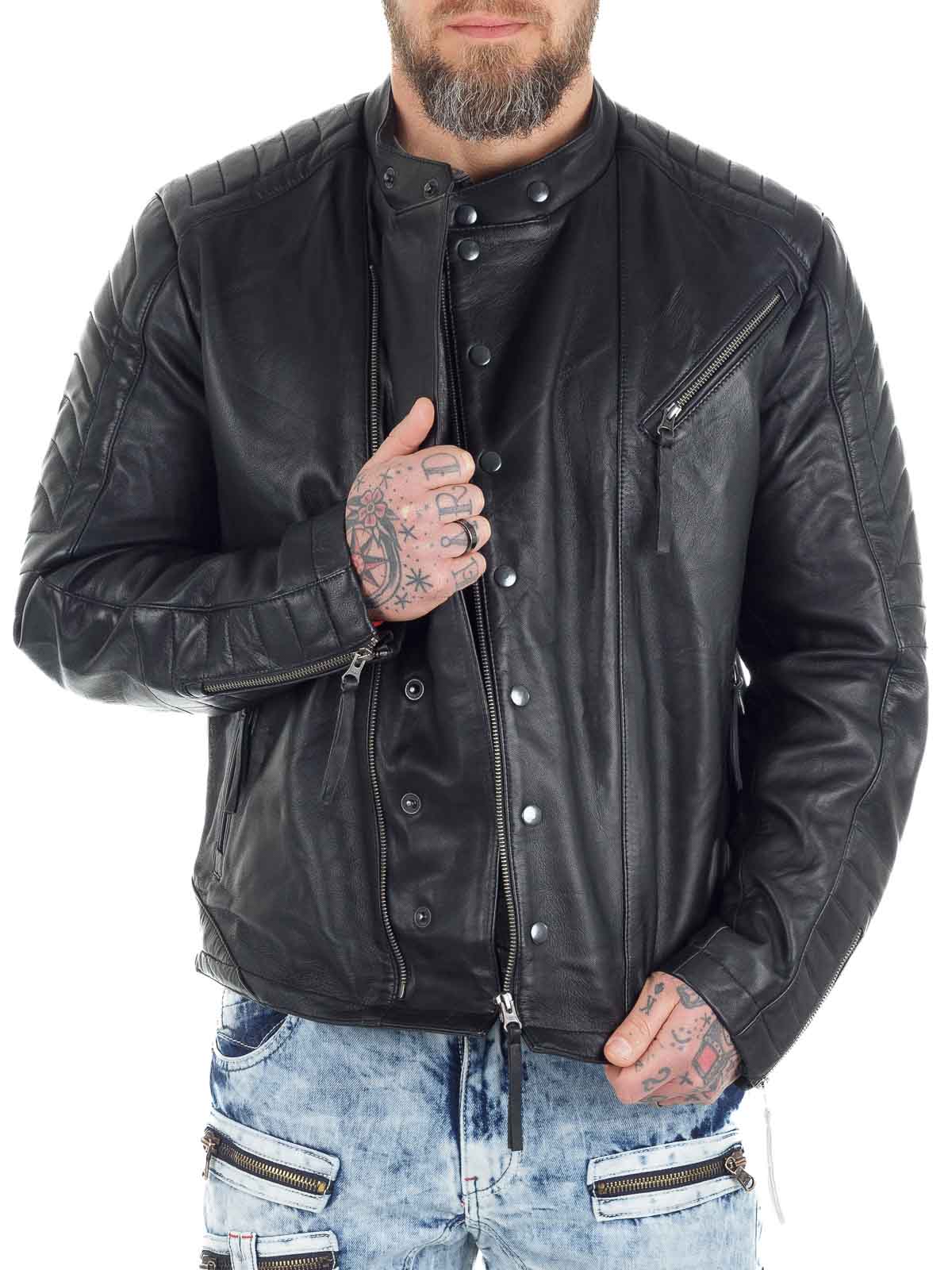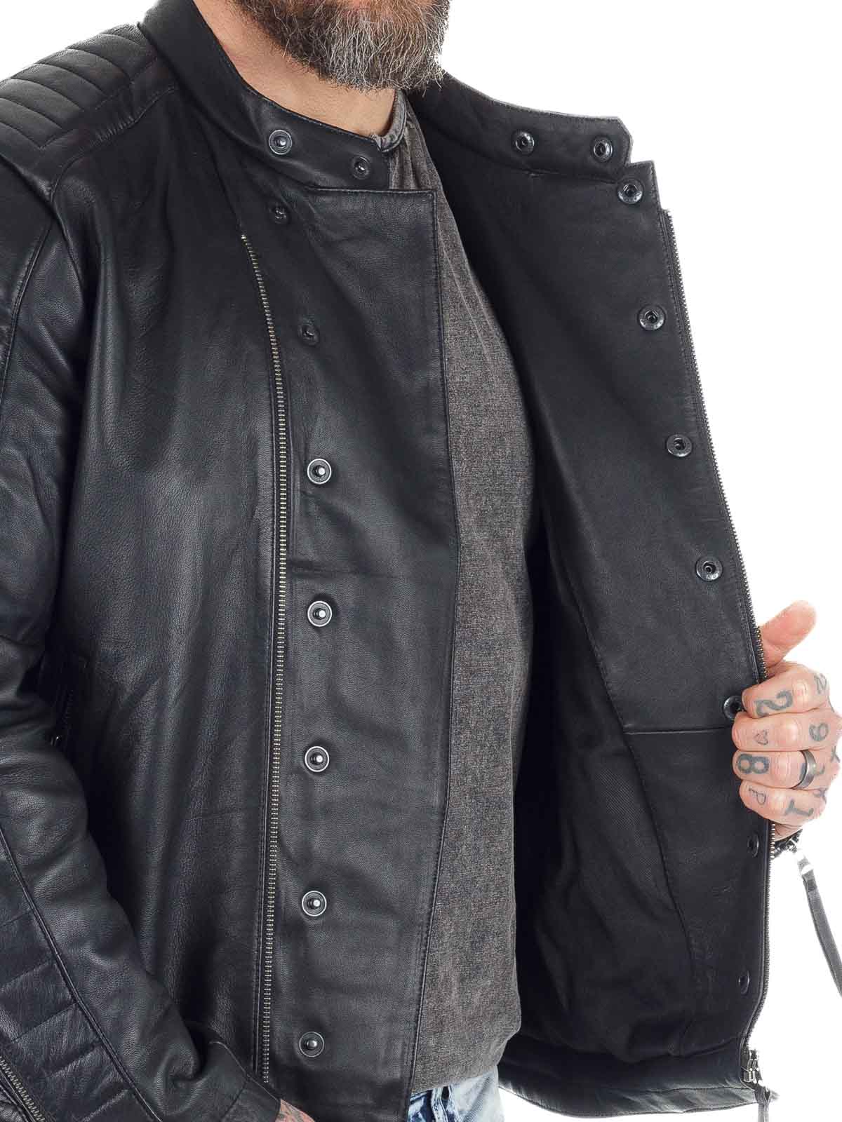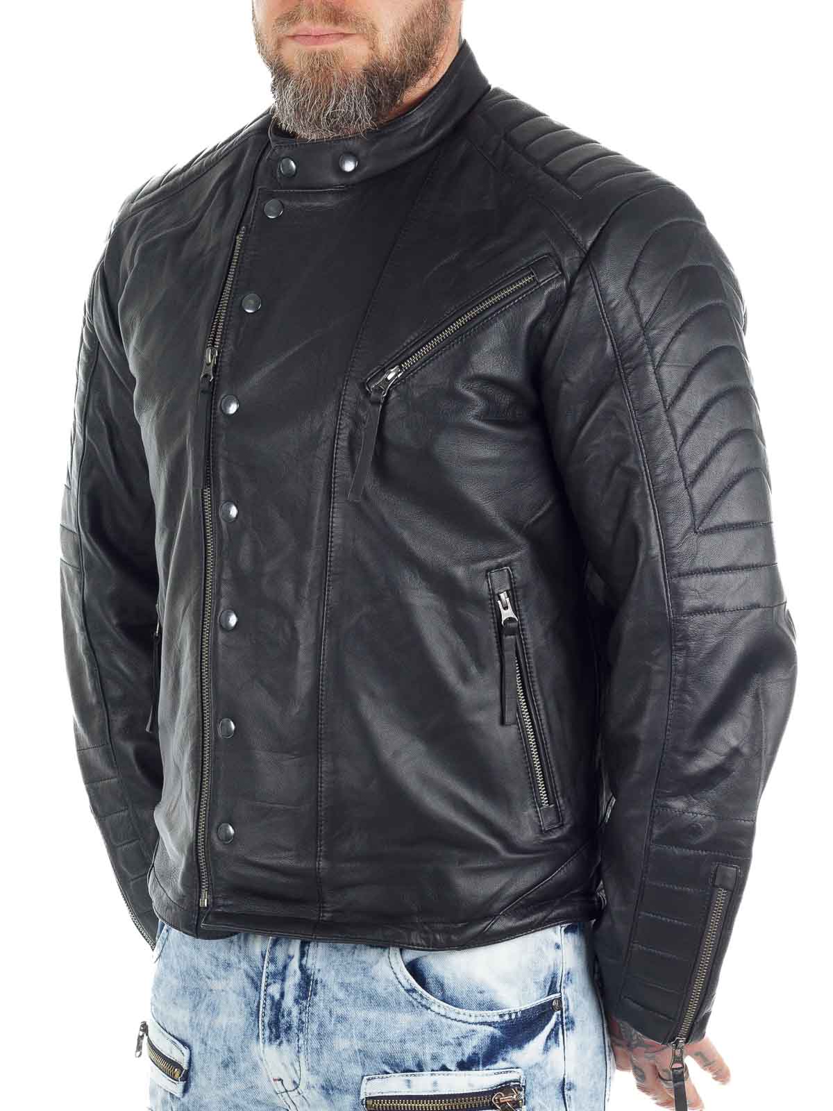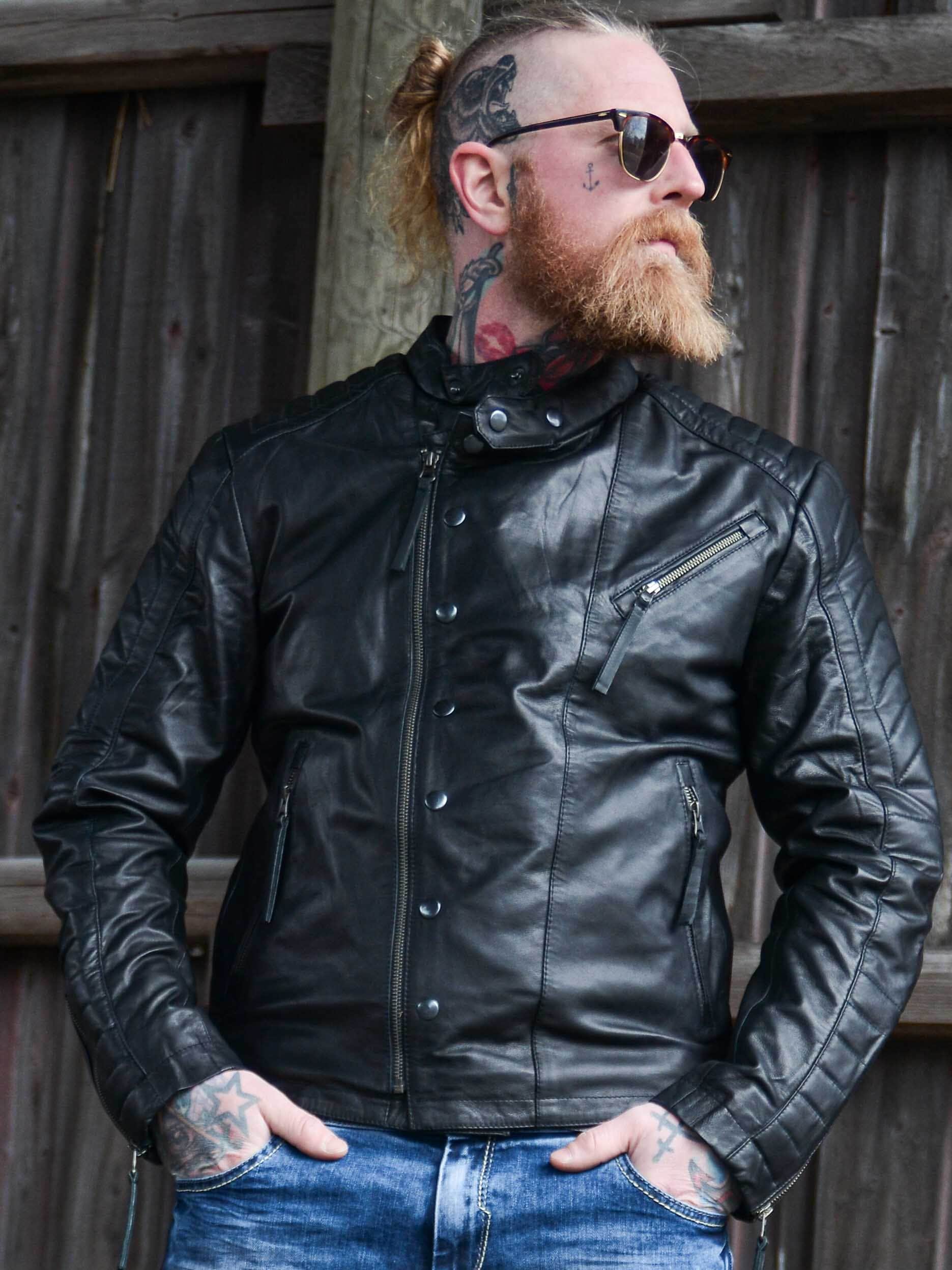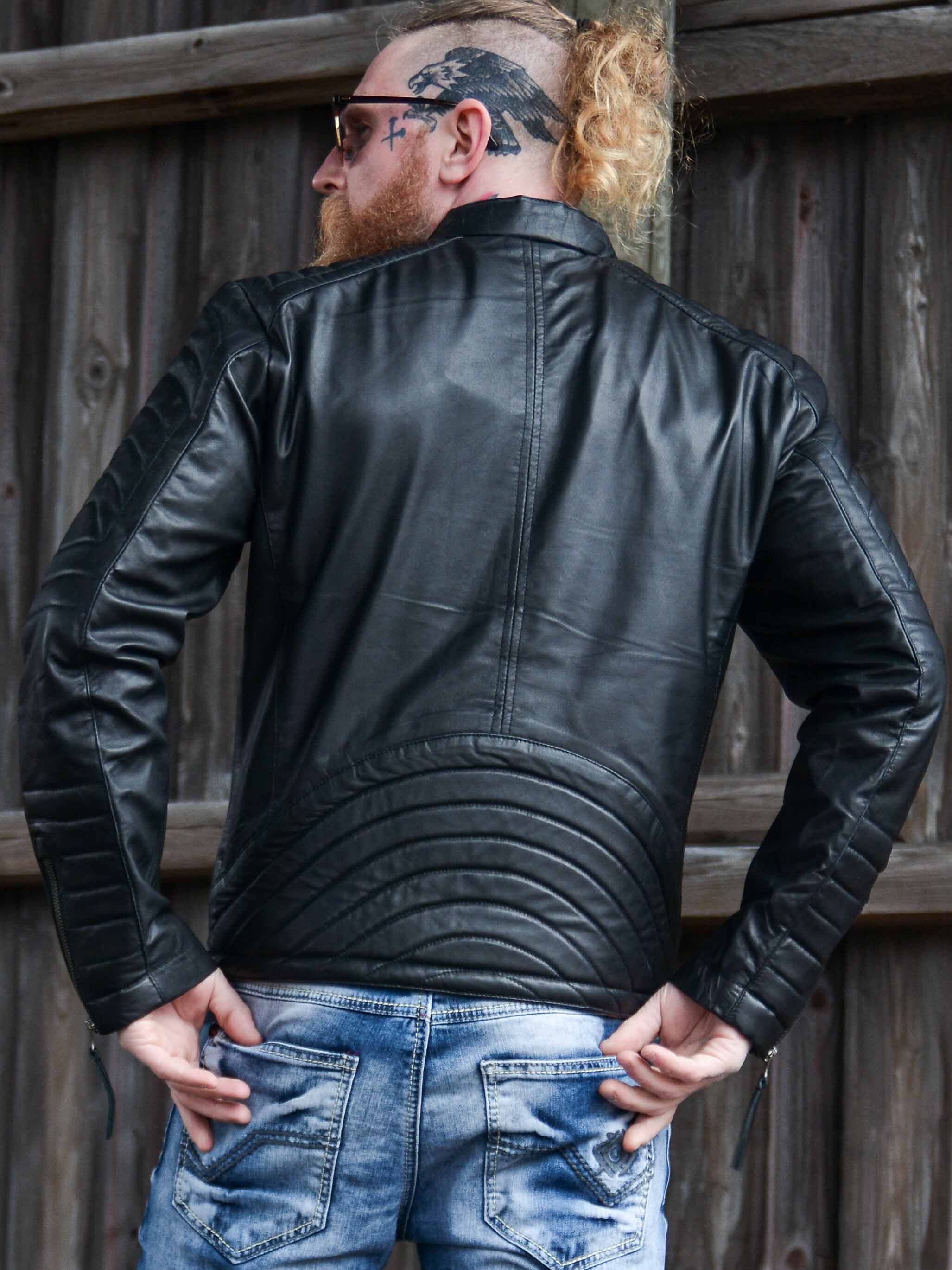 Tuff skinnjacka i mjukt och följsamt fårskinn med markerade detaljer som ger ett kraftfullt uttryck. Modellen har dragkedje- och knappstängning framtill samt vadderade partier på axlar, ärmar och rygg som förstärker den bikerinspirerade looken. Tre praktiska ytterfickor och två innerfickor gör jackan både snygg och funktionell. En exklusiv skinnjacka med attityd som passar perfekt för dig som vill ha både komfort och karaktär!