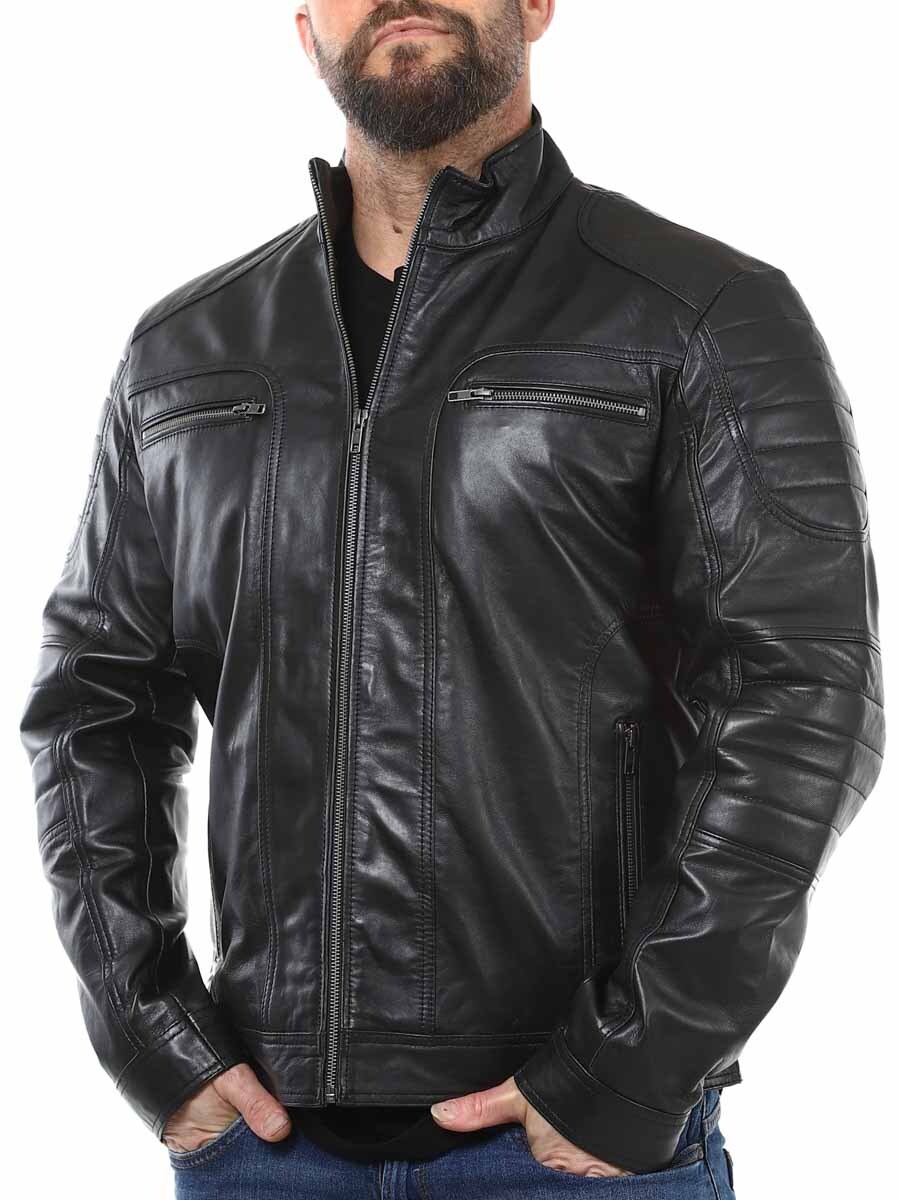 Snygg och stilren skinnjacka med krage som stängs med dragkedja. Den är reglerbar i ärmsluten med dragkedja och har vadderade partier. Det finns fyra stängbara framfickor och två innerfickor. Denna jacka hittar du endast hos Rockdenim!