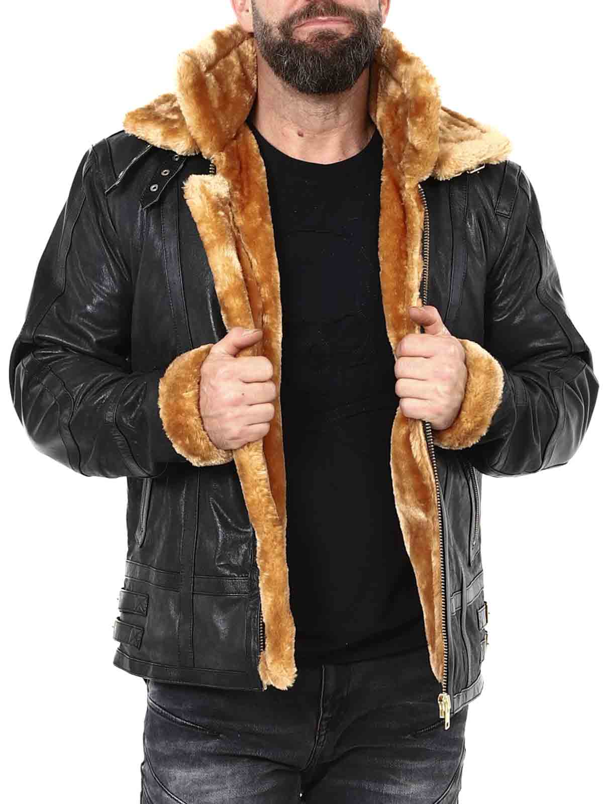 En ikonisk och kraftfull jacka i äkta buffelläder, skapad för mannen som kräver både stil och hållbar kvalitet. Den robusta läderytan kombineras med mjuk pälsimitation som löper längs hela insidan och ger ordentlig värme under kyliga dagar. Den har också dubbla pälskragar – där ytterkragen är avtagbar så att du enkelt kan anpassa looken efter väder och tillfälle. Utrustad med stängbara fickor och justerbara spännen. En jacka med karaktär – för dig som inte nöjer sig med mindre än det bästa. Endast hos RockDenim!