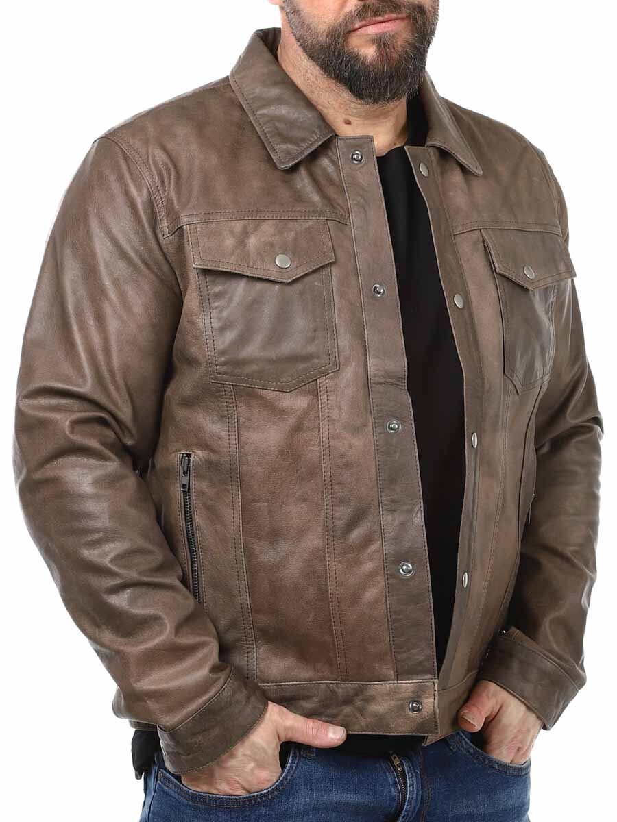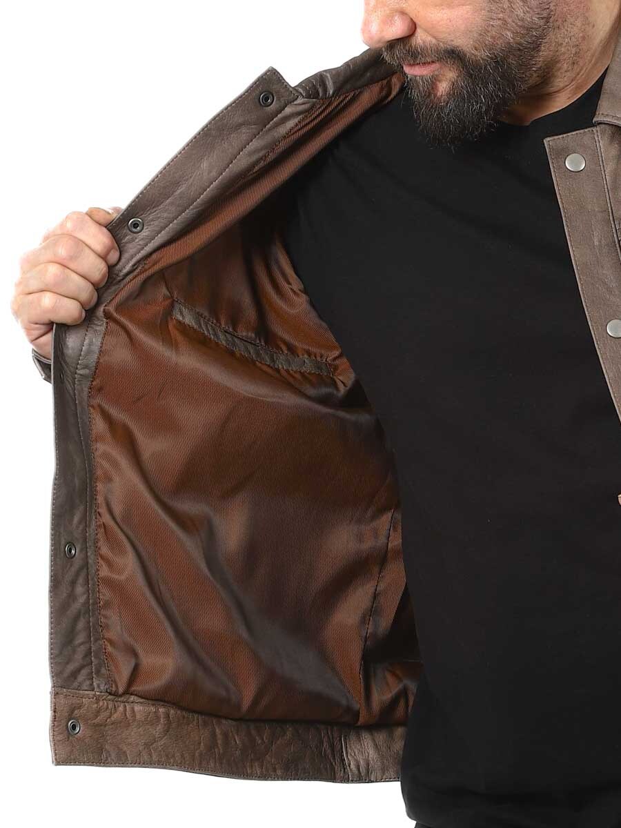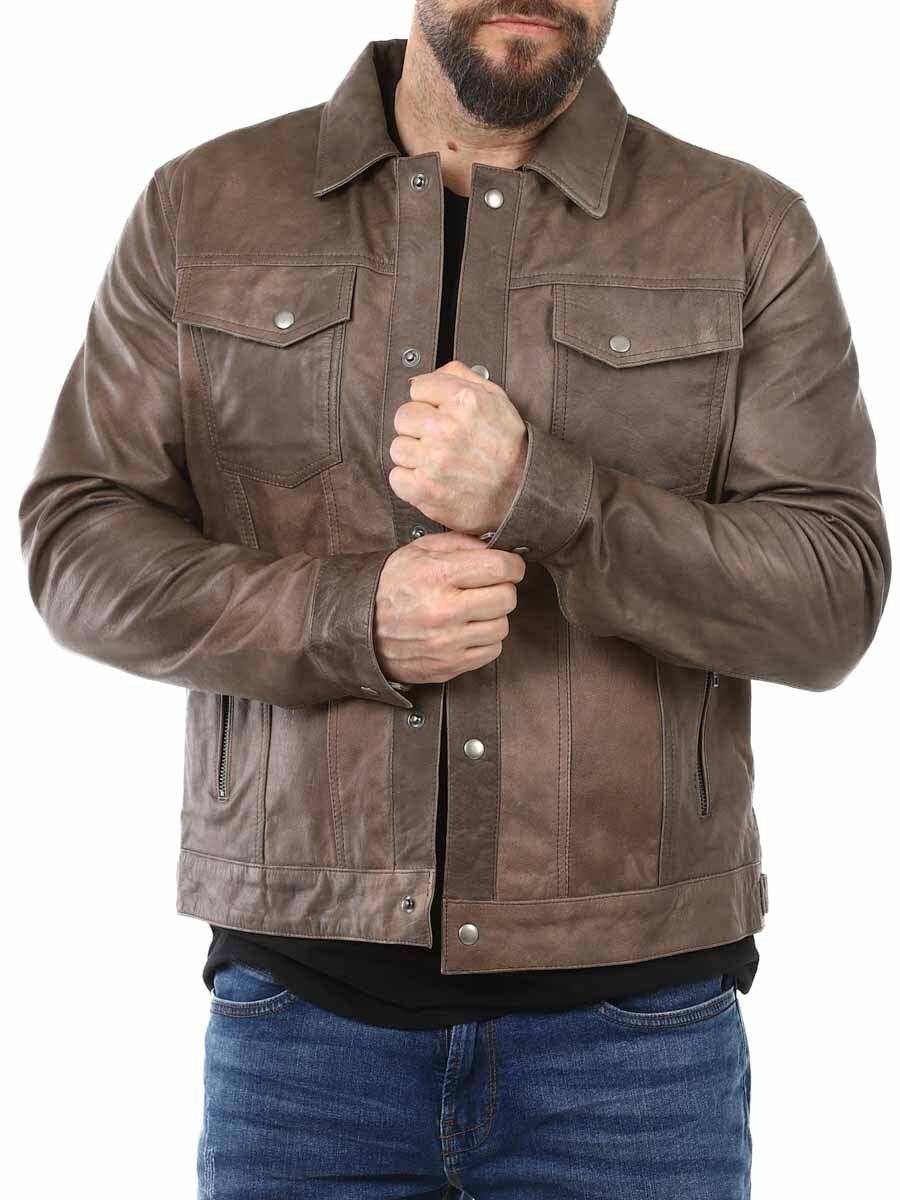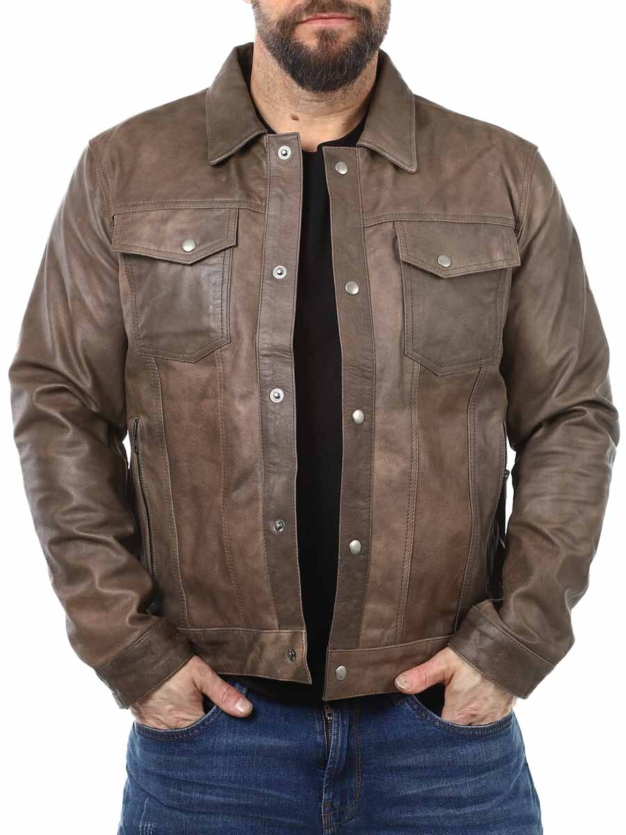 Ge din garderob en uppgradering med denna bruna skinnjacka. En bekväm jacka i äkta läder som är reglerbar i linningen och i ärmsluten. Det finns fyra stängbara framfickor och två innerfickor. Jackan har krage och stängs med knappar. Denna jacka hittar du enbart hos Rockdenim!