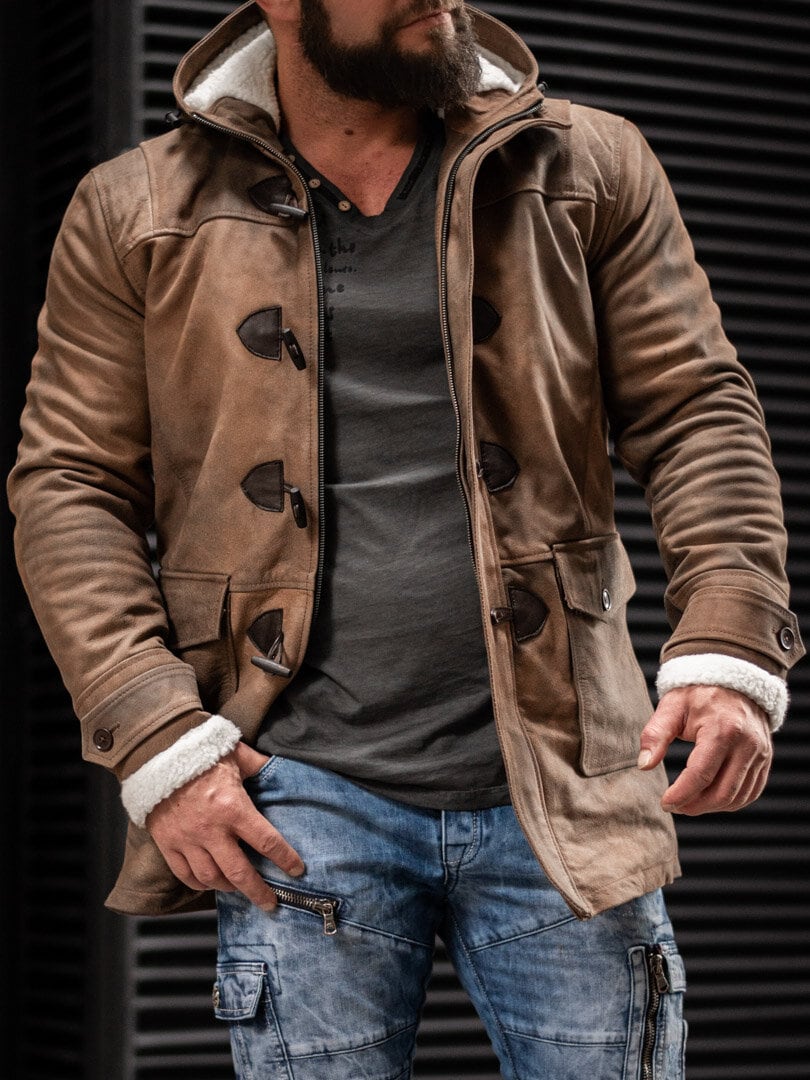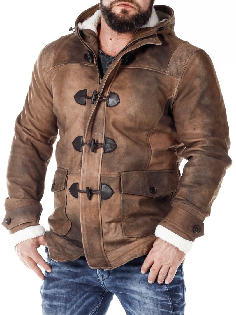 Brun jacka med huva och vitt teddyfoder. Unikt designad till våra kunder. Den har två djupa framfickor, samt två innerfickor. Stängs med både dragkedja och dekorativ knäppning. Finns endast hos Rockdenim!