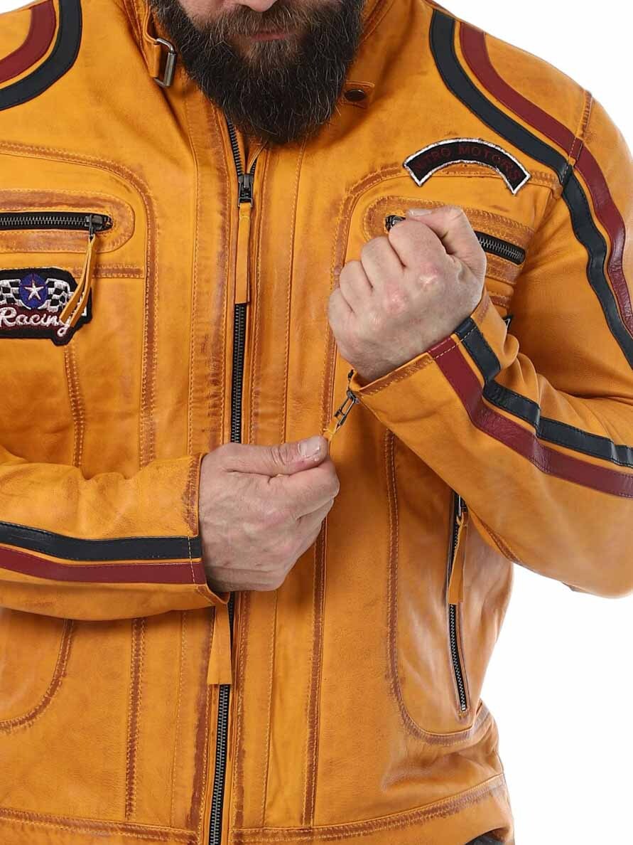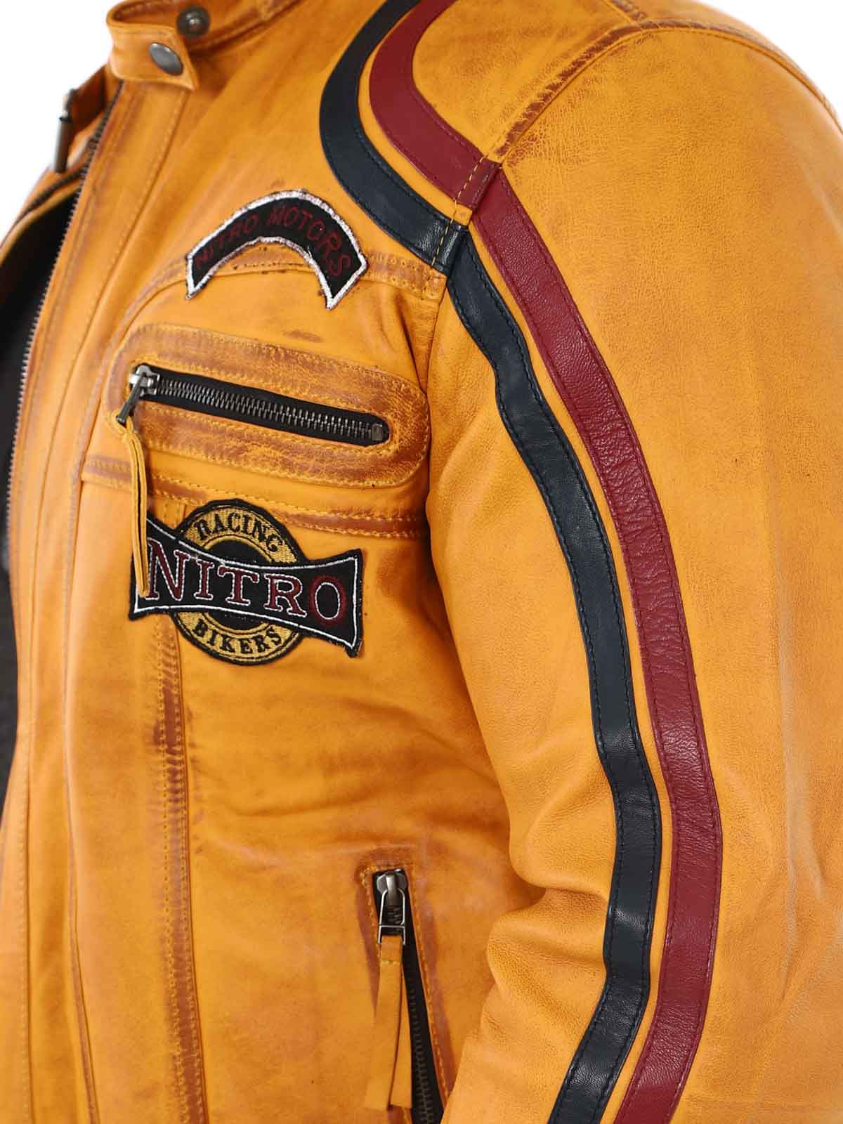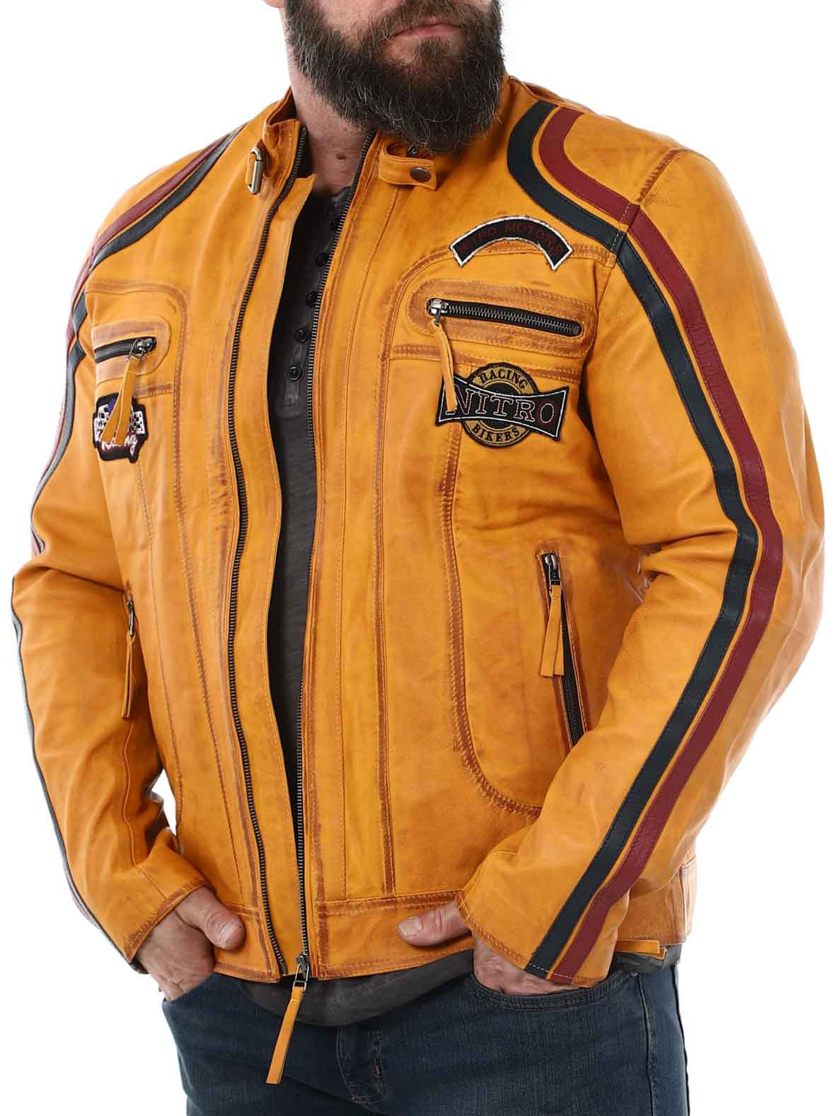 Jacka med tygpatches och stripes som ger en snygg racing-look. Tillverkad i mjukt och följsamt läder. Den har fyra framfickor med dragkedja, två innerfickor och reglerbara ärmslut. Fräck jacka som endast finns hos RockDenim!