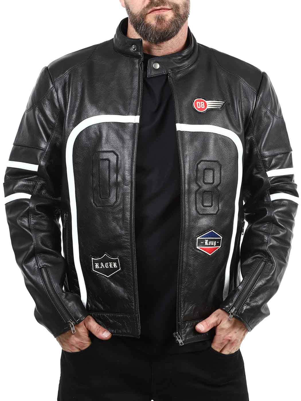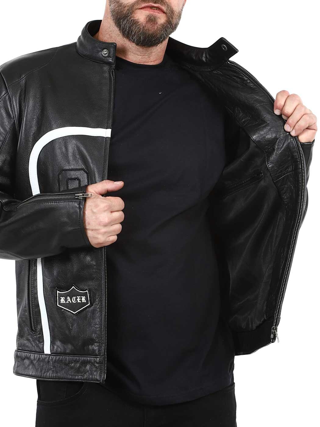 Gör ett kraftfullt intryck med denna svarta bikerinspirerade jacka, designad för att kombinera stil med attityd. Jackan har ståkrage med tryckknapp, två stängbara fickor på magen och två innerfickor. Denna jacka hittar du endast hos Rockdenim!